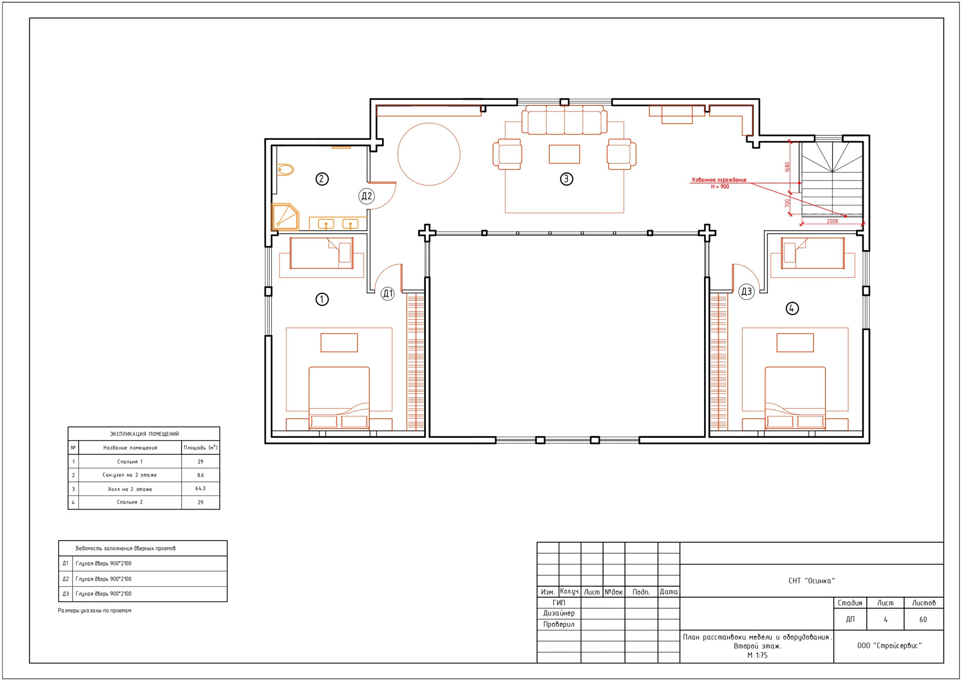 На втором этаже расположены две спальни, санузел и просторная гостиная зона отдыха с возможностью зонирования.
