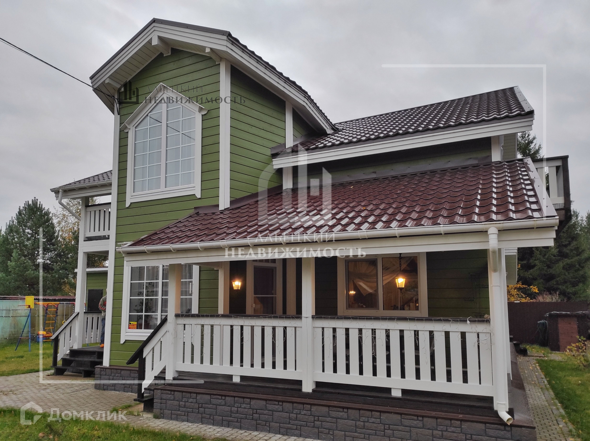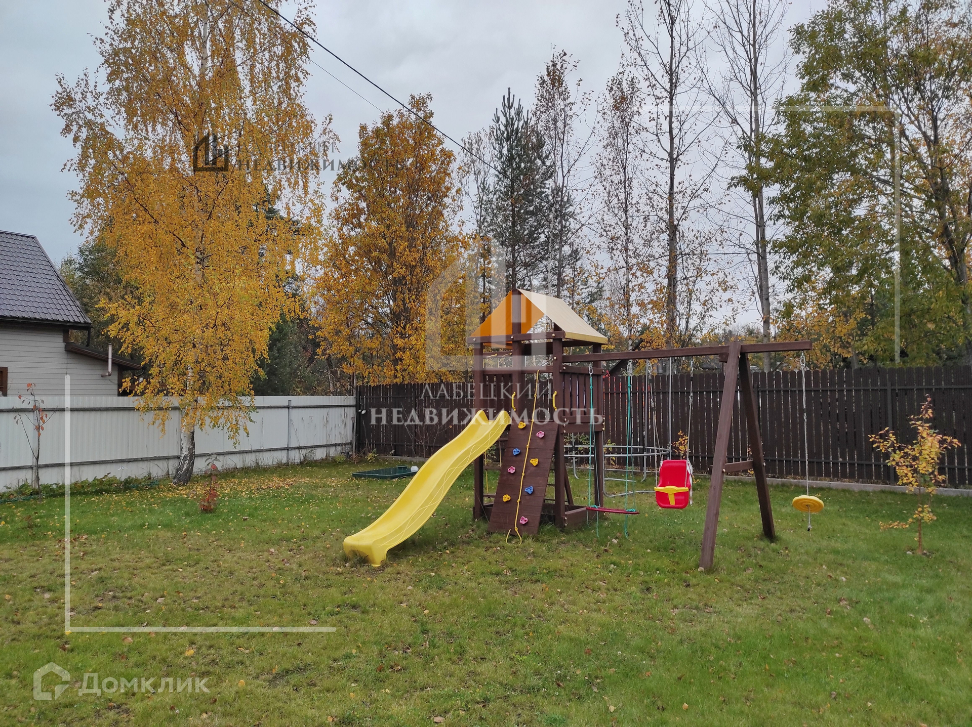 Участок 8 соток, огорожен забором, на участке крытая ПАРКОВКА для двух машин, дорожки, хоз. блок 25 м², детская и спортивная площадки, плодовые кусты и деревья. Сделан качественный дренаж.