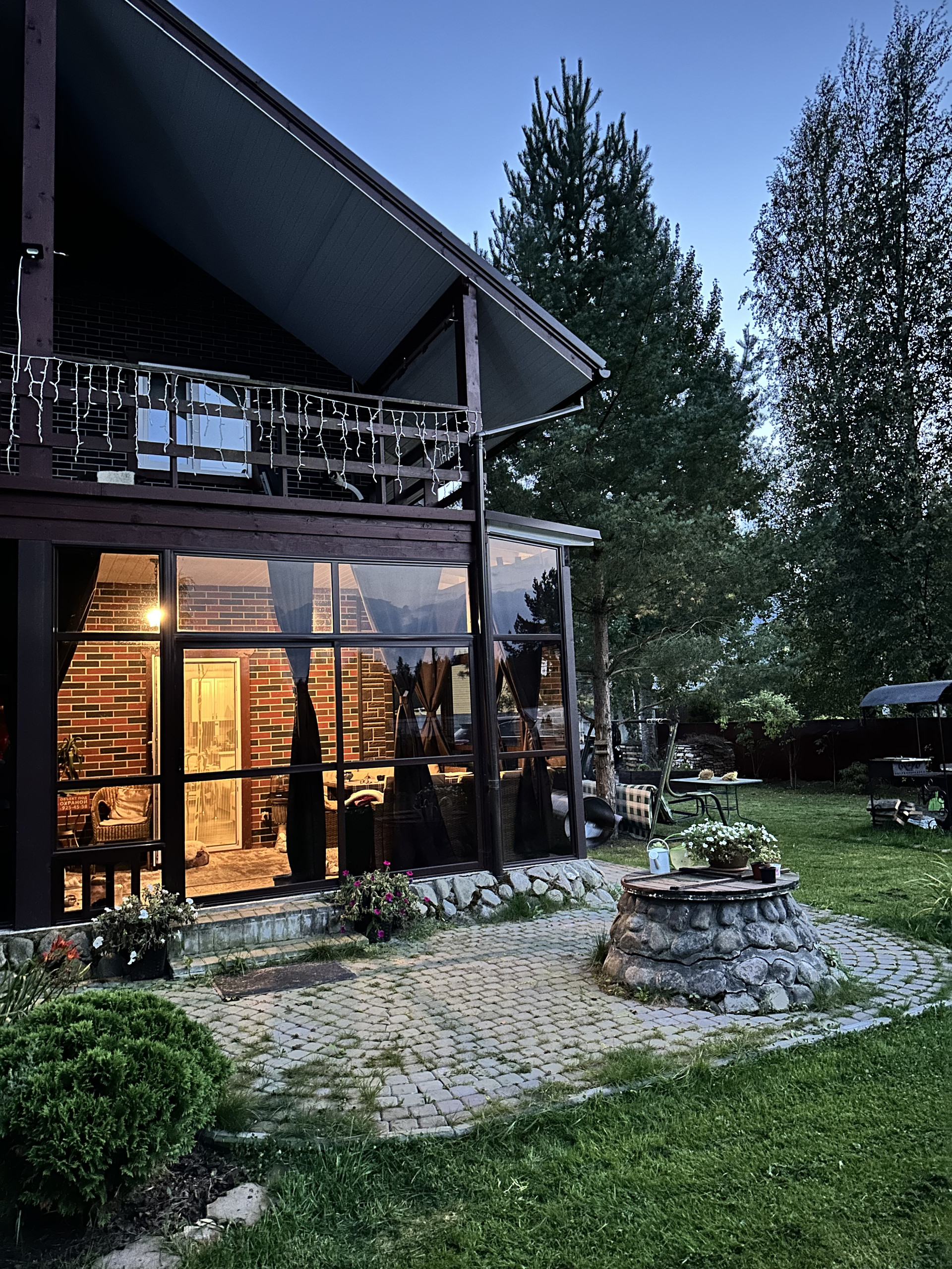 Участок 8 соток – сухой, высокий, ровный. Сделан ландшафтный дизайн и дренаж. На участке: бассейн с подогревом, фильтрацией и подсветкой; место под шашлык/барбекю; теплица; парковка на 4 машины; автоматические откатные ворота; брусчатка вокруг дома и на парковке. С одной стороны периметра участка живая изгородь из елок и сосен, с другой - изгородь из туй. На участке вырыт пруд с нимфеями, посажены плодово-ягодные и декоративные кусты, деревья и растения, есть зона для высадки садовых и овощных культур.