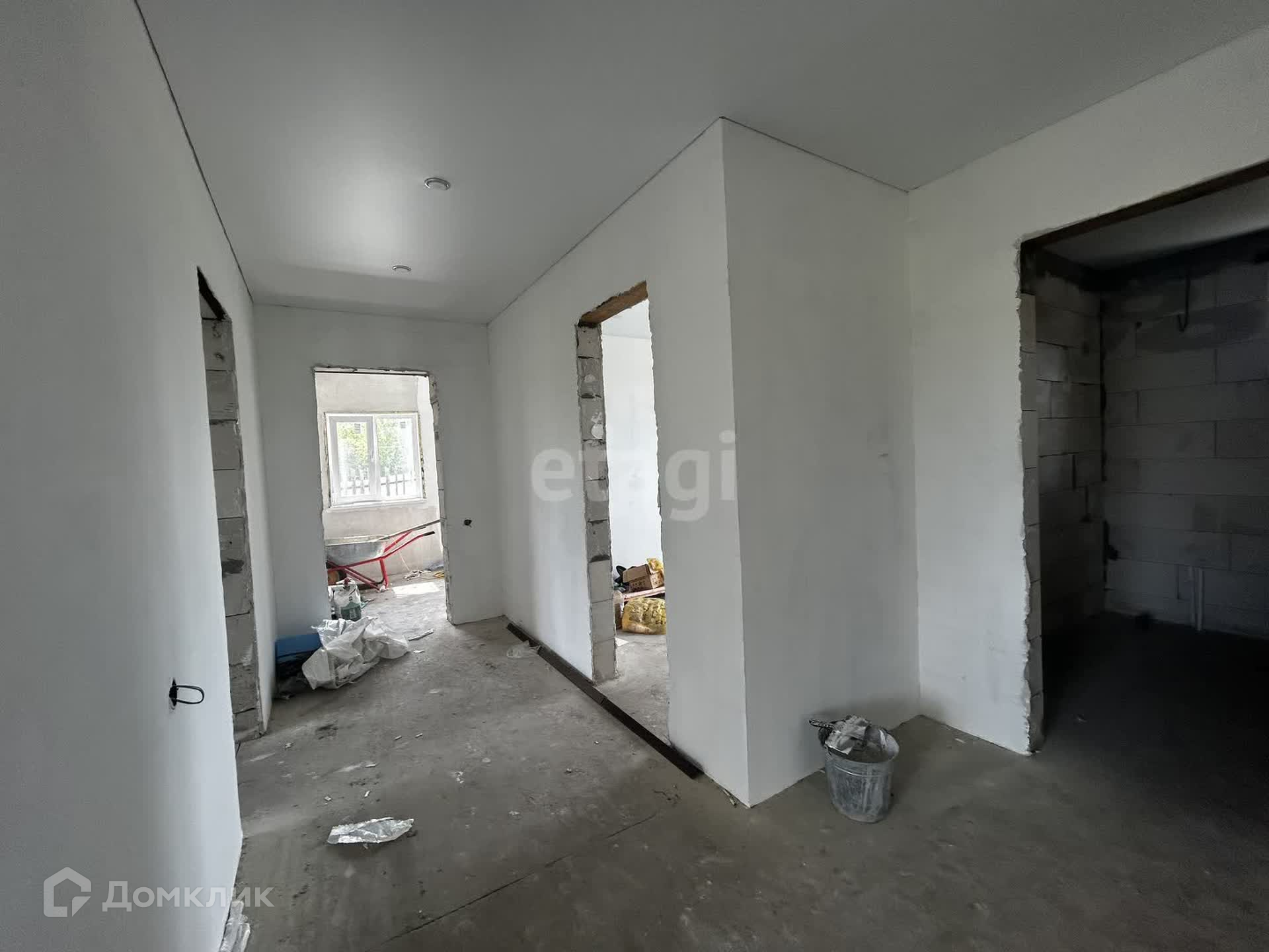 Дом находится в предчистовой отделке. Натянуты матовые натяжные потолки. Выровнены стены, залит пол. Отопление в доме водяное, разведено в полу, что улучшает эстетический вид помещений за счёт того что отсутствуют батарея отопления. установлен электрический котёл. При желании можно провести газ так как газ проходит по улице. Дом находится на участке 6 соток. Земля обработана. Есть большая вероятность выкупить граничащие участки.