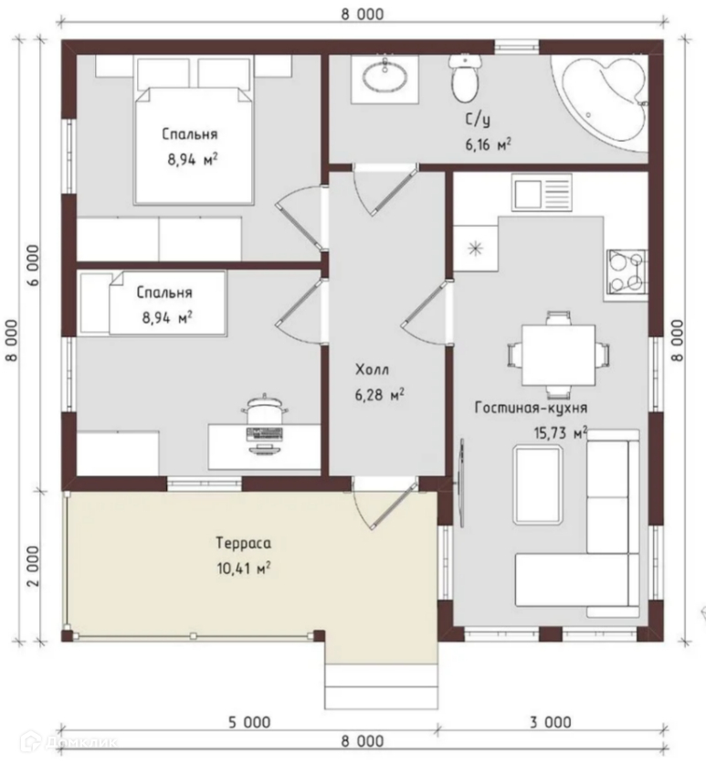 Общая площадь 56 м2