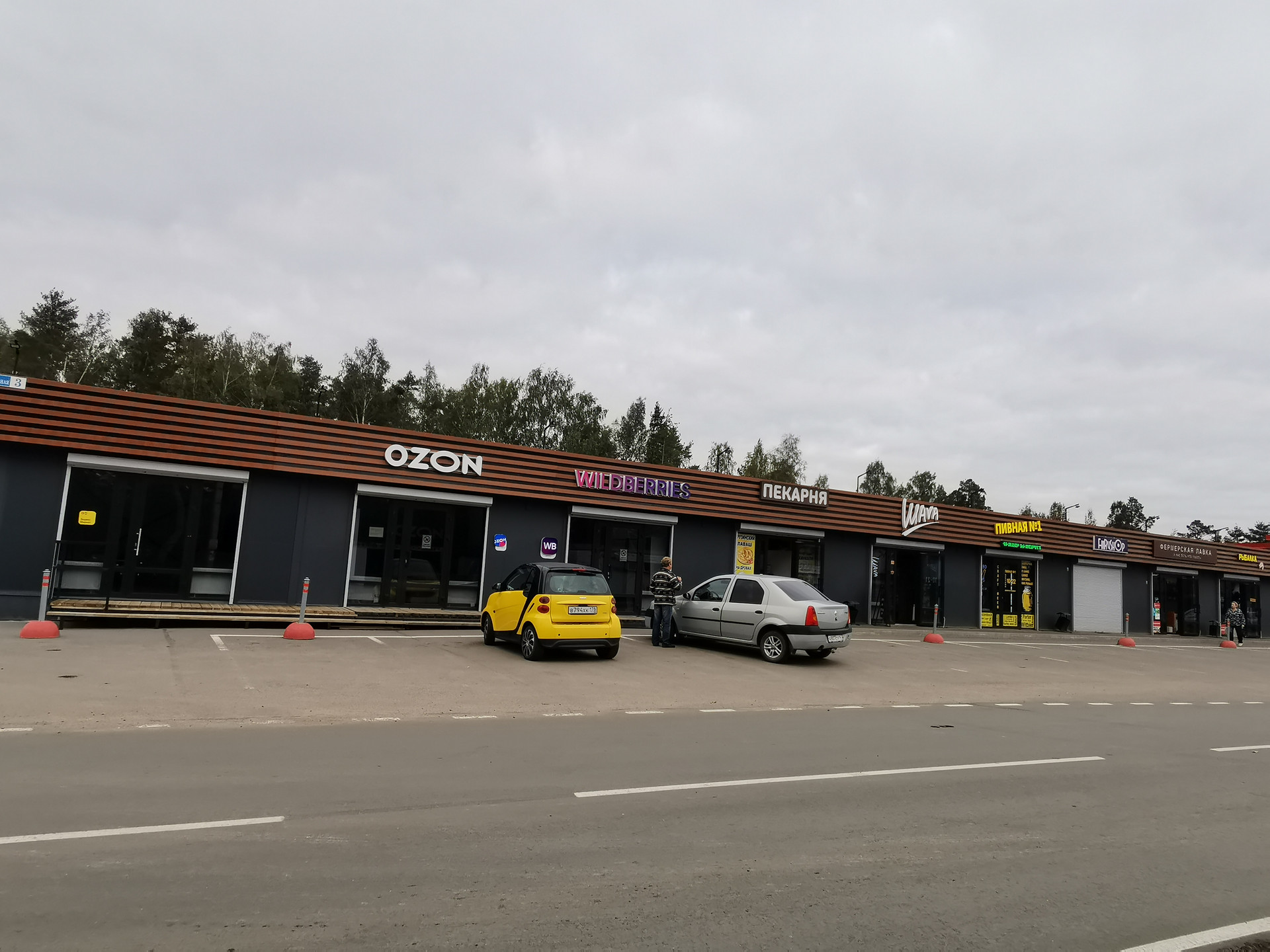 У станции есть все необходимые магазины, Хлебник  и пункт выдачи ОЗОНа (см.фото).