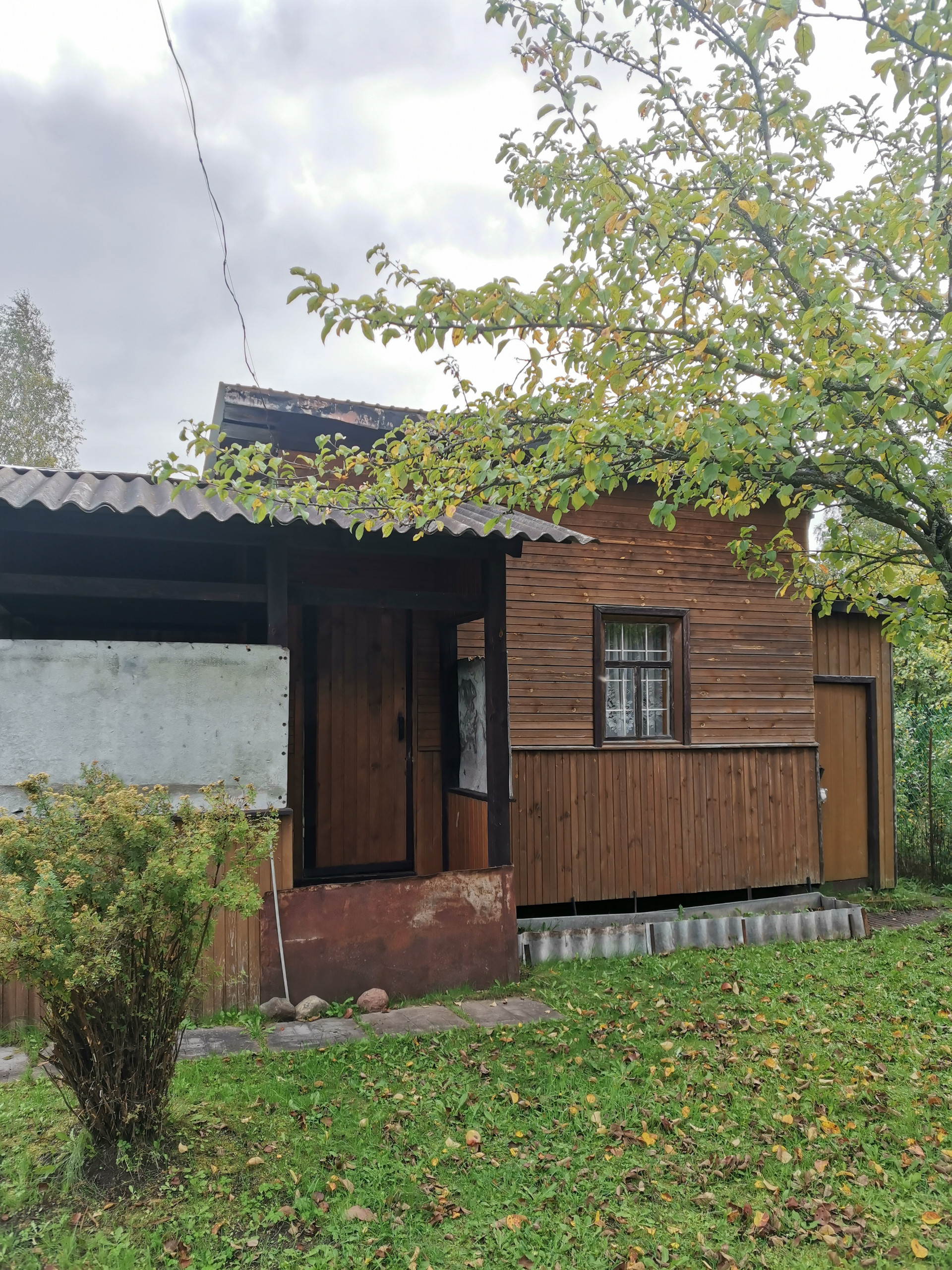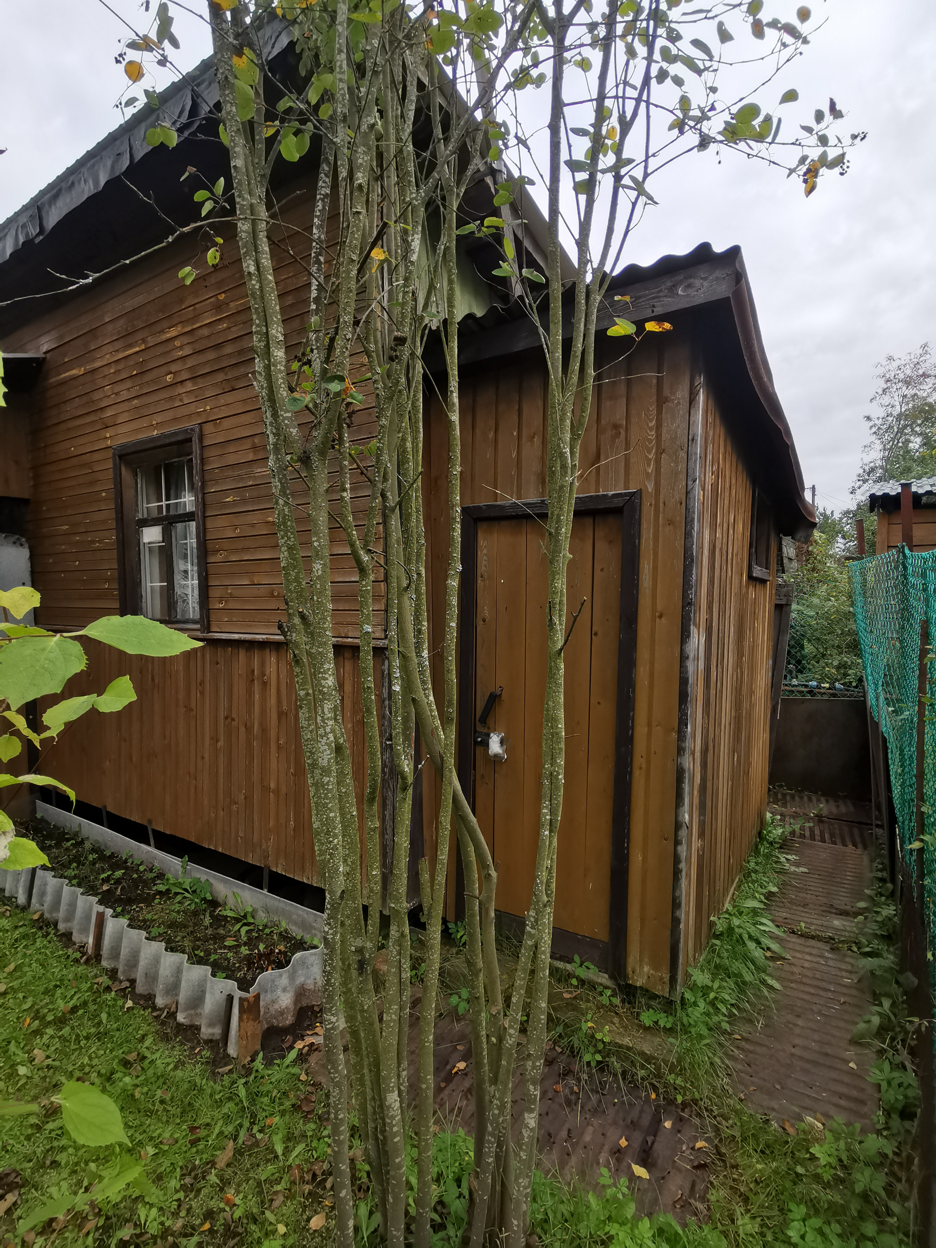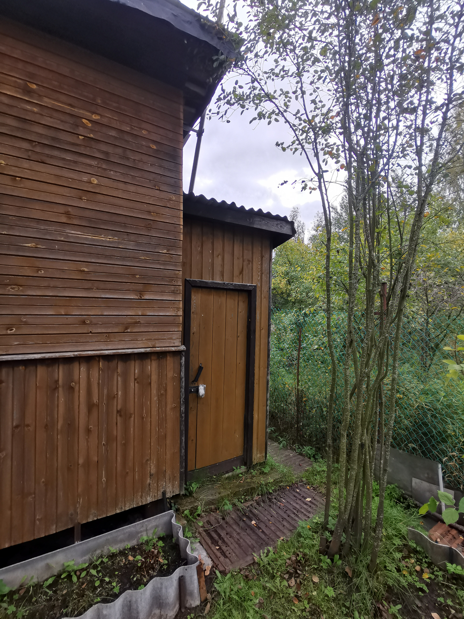 На участке также есть гостевой домик с небольшой террасой, оборудованным душем с проточным нагревателем и туалетом. За времянкой организовано место под компост.