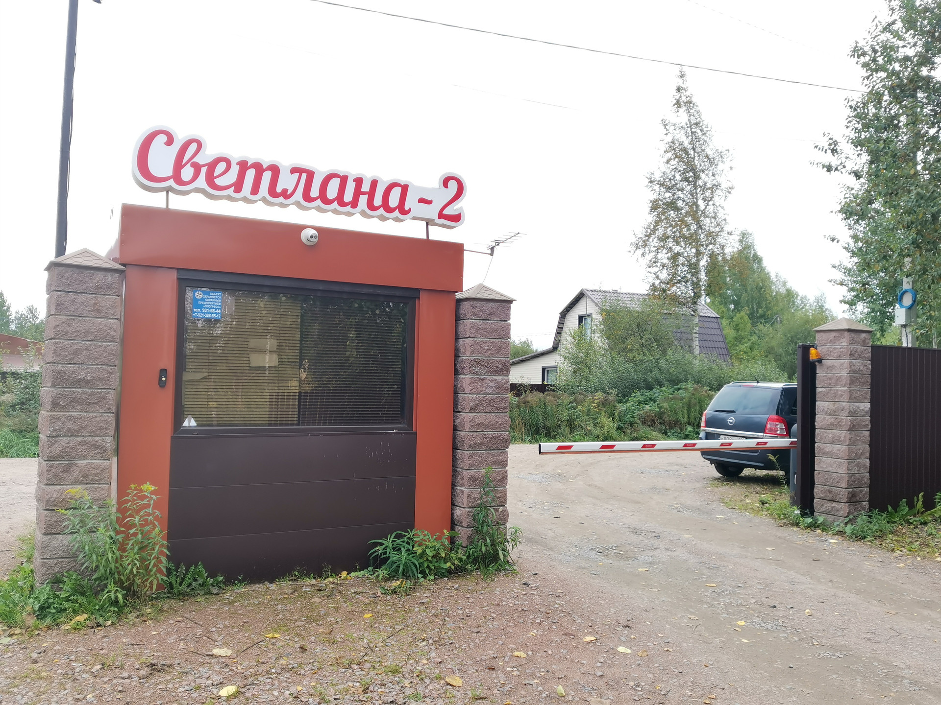 Въезд на территорию садоводства оборудован шлагбаумом.