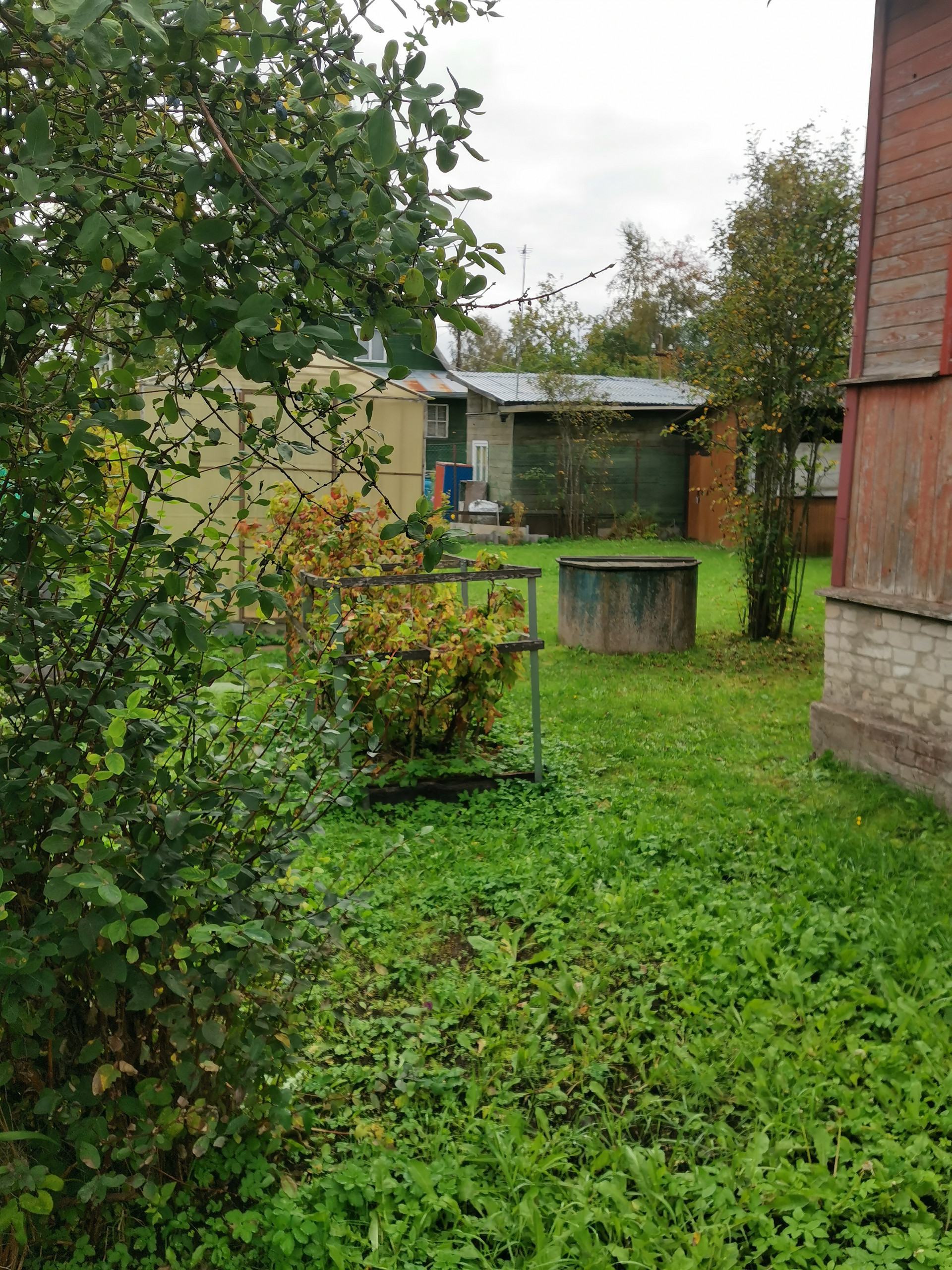 На участке организован небольшой огород, есть 3 яблони, 3 сливы, два куста крыжовника, 3 куста черной смородины, 1 - красной. Есть большой и удобный парник.