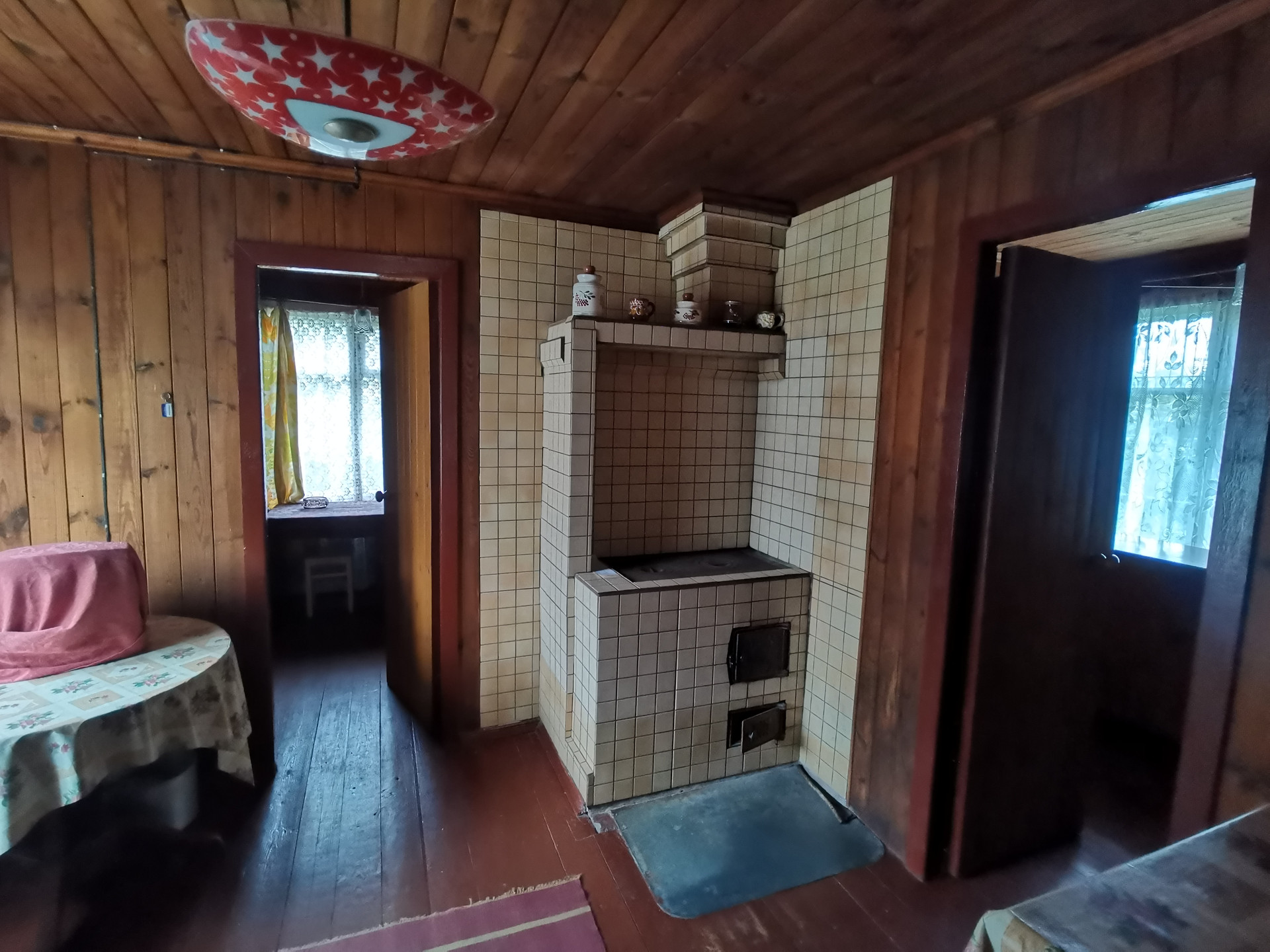 В доме отличная рабочая печь с плитой, отделанная жаропрочной плиткой. (В дровнике под кухней - запас дров на несколько лет).