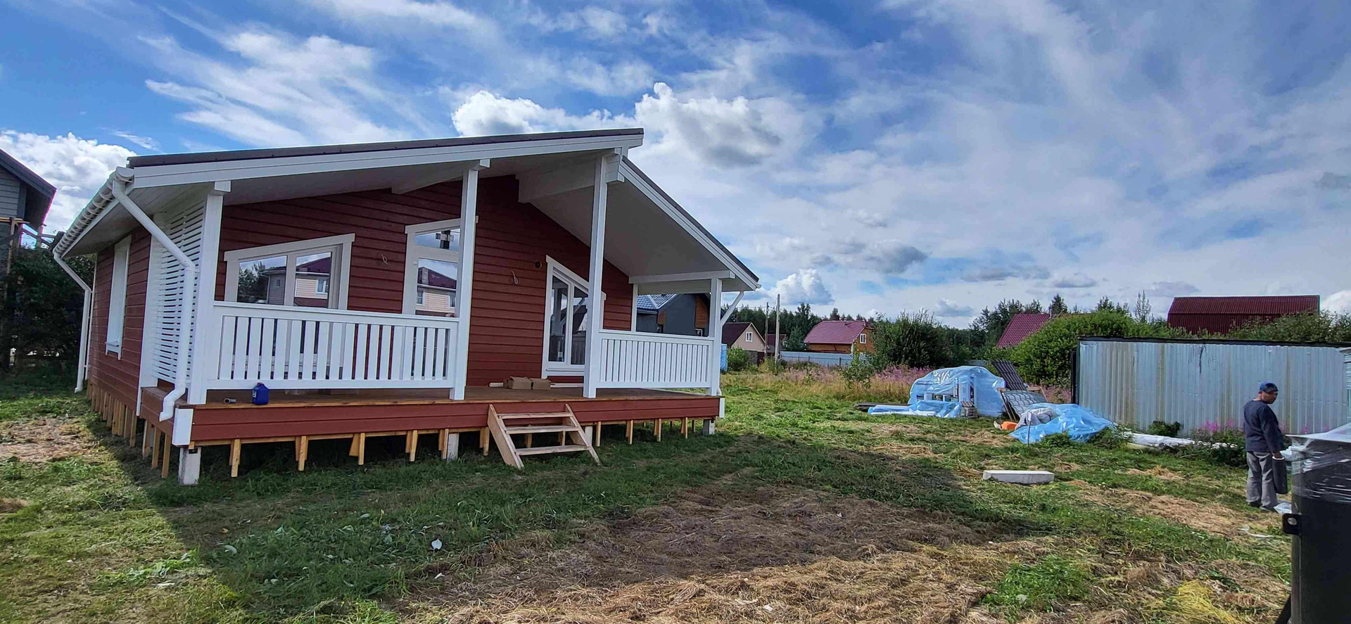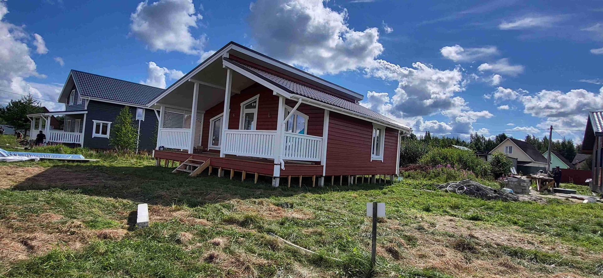 Внутренняя отделка с электрикой и оконечкой (розетки выключатели), инженерная сантехника с белой сантехникой в с.у,. 15 квт эл-во подземный бронированный кабель, канализация -станция глубокой биоочистки евролос био 5 +, вода из колодца (подвод с греющим кабелем), бойлер для горячей воды,