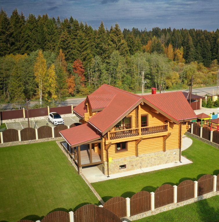 Дома находятся у тихой дороги рядом с лесным массивом