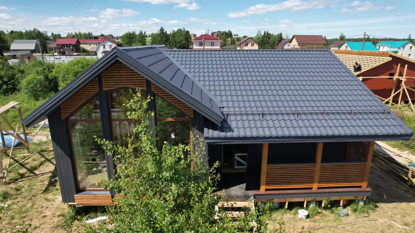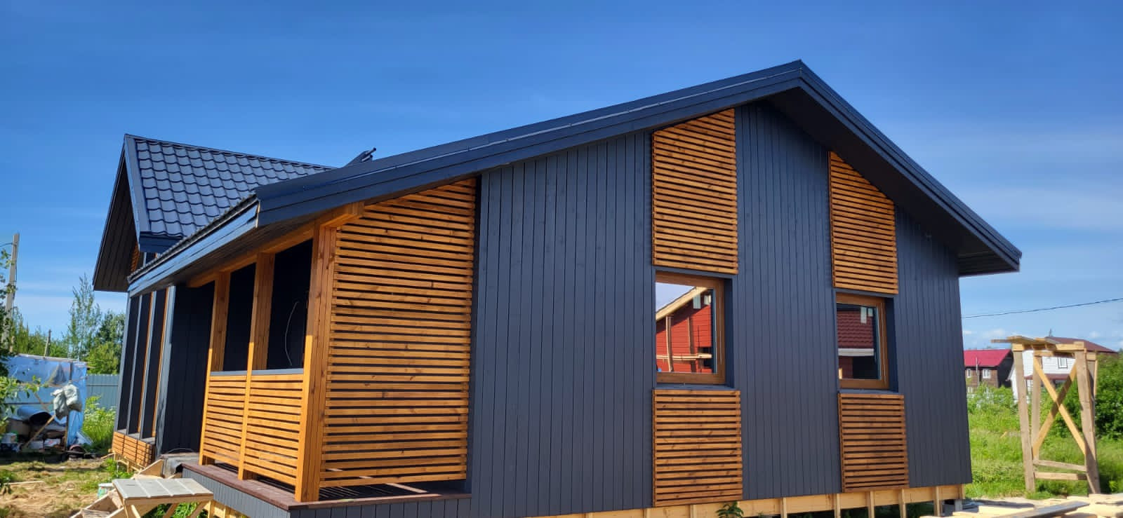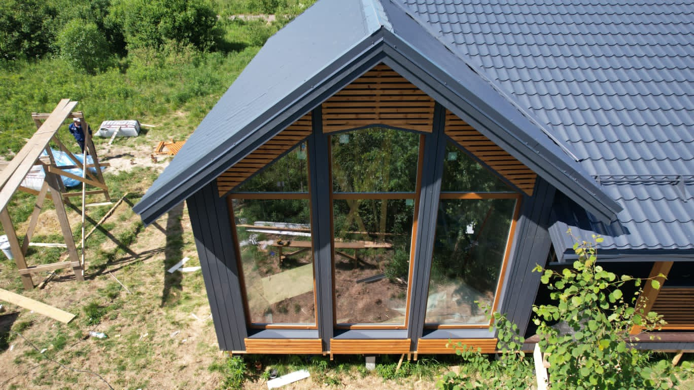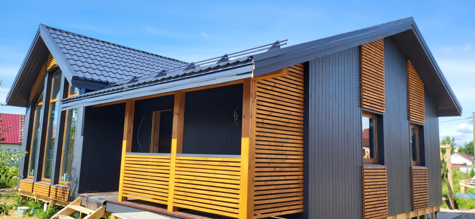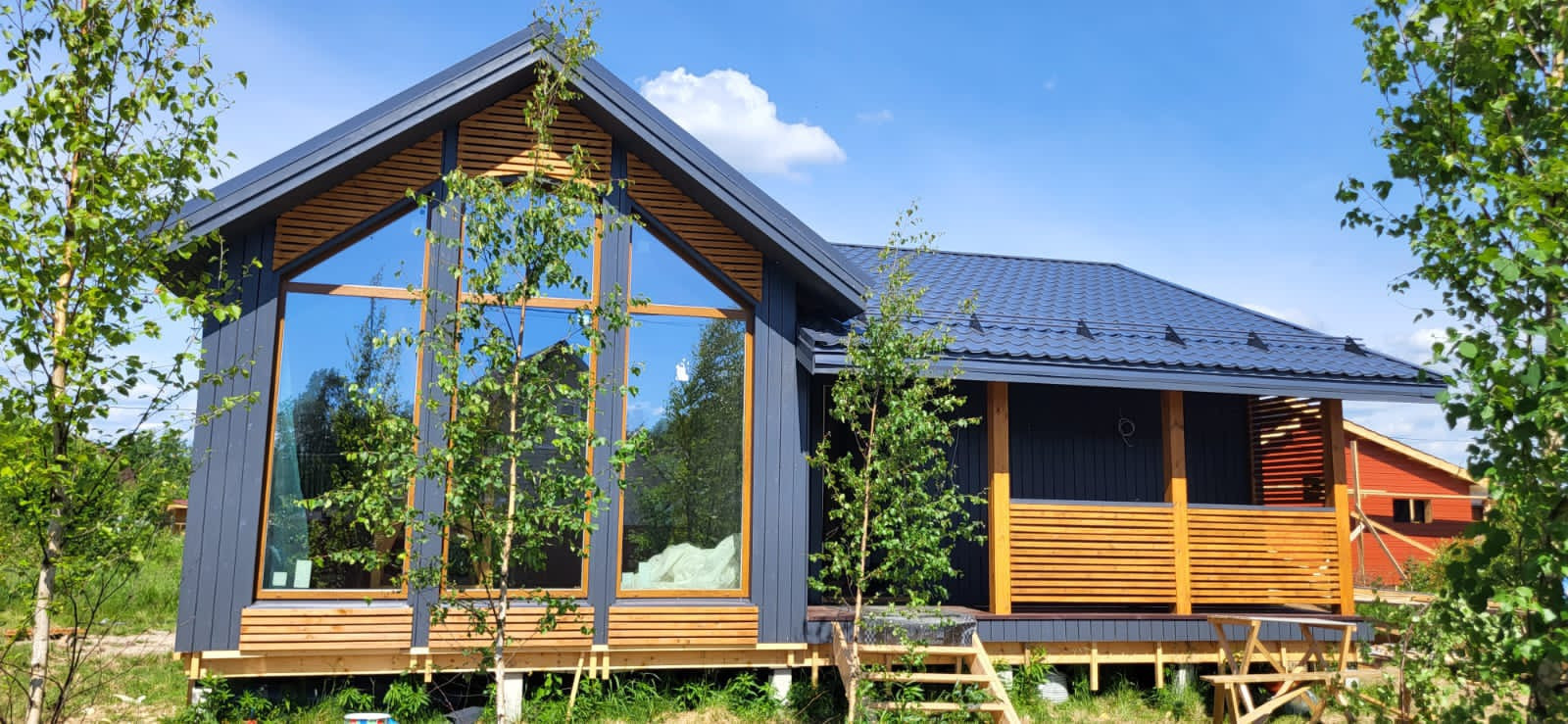 Участок удачно подошел для строительства этого дома, несмотря на 6 соток большая солнечная часть территории остаётся под свободное пользование.