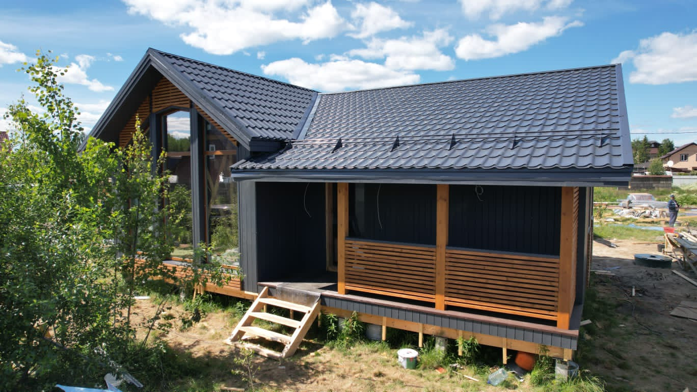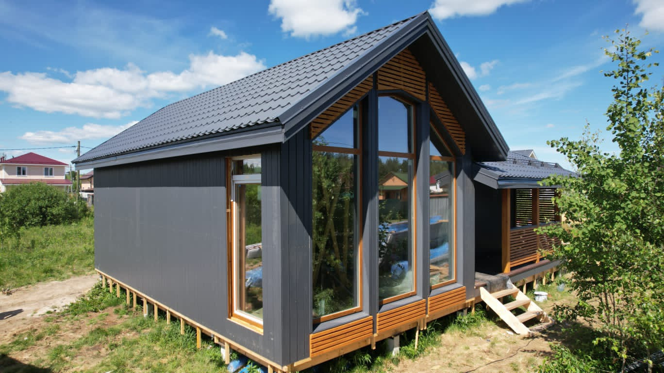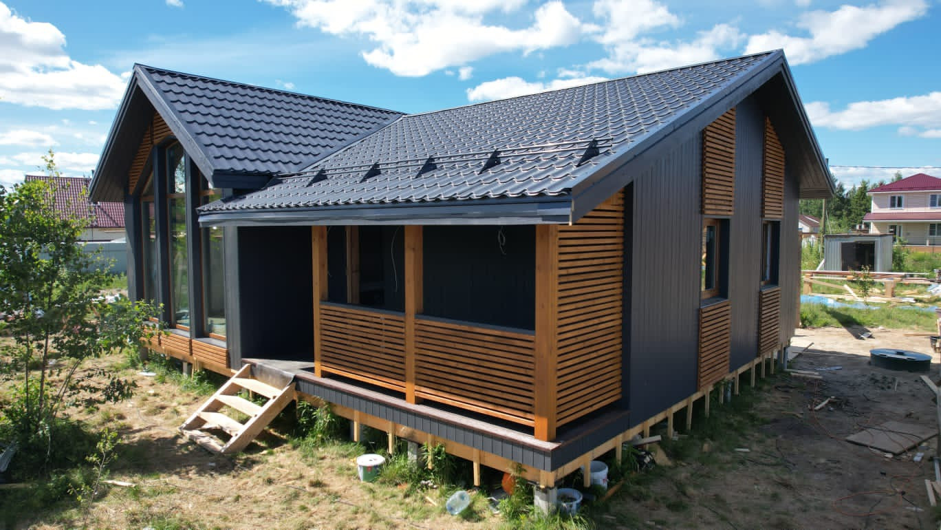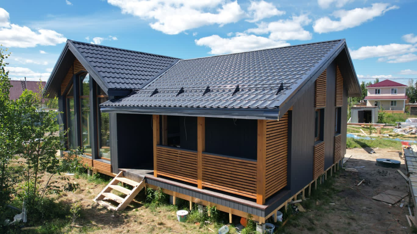В продаже небольшой энергоэффективный, ЗИМНИЙ дом 105м2 для постоянного проживания или круглогодичной дачи  с удобной продуманной планировкой, на участке 6 соток.