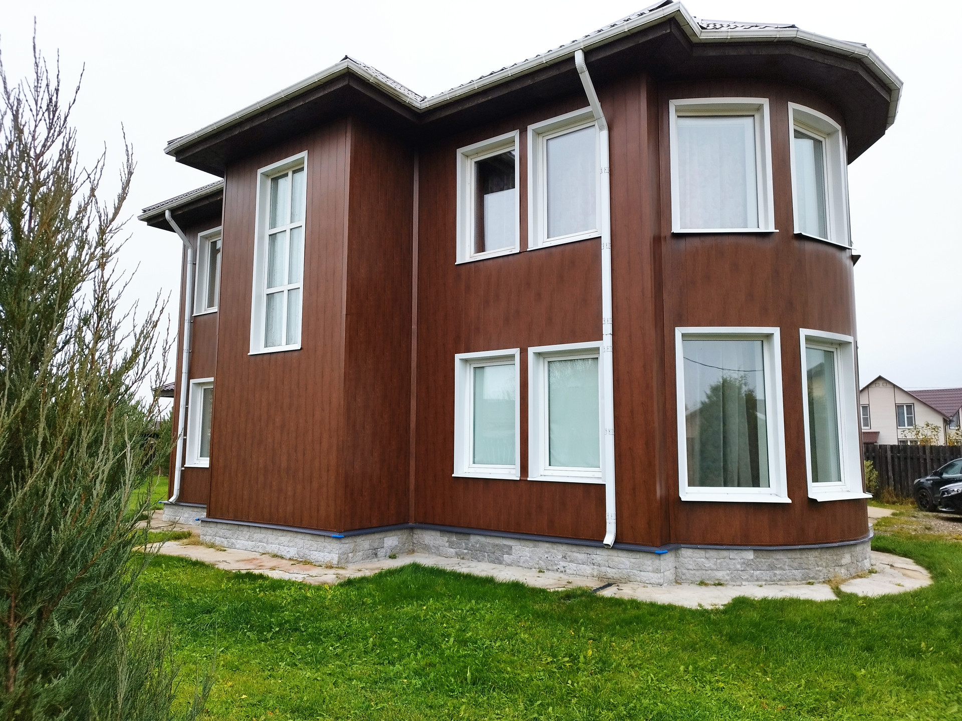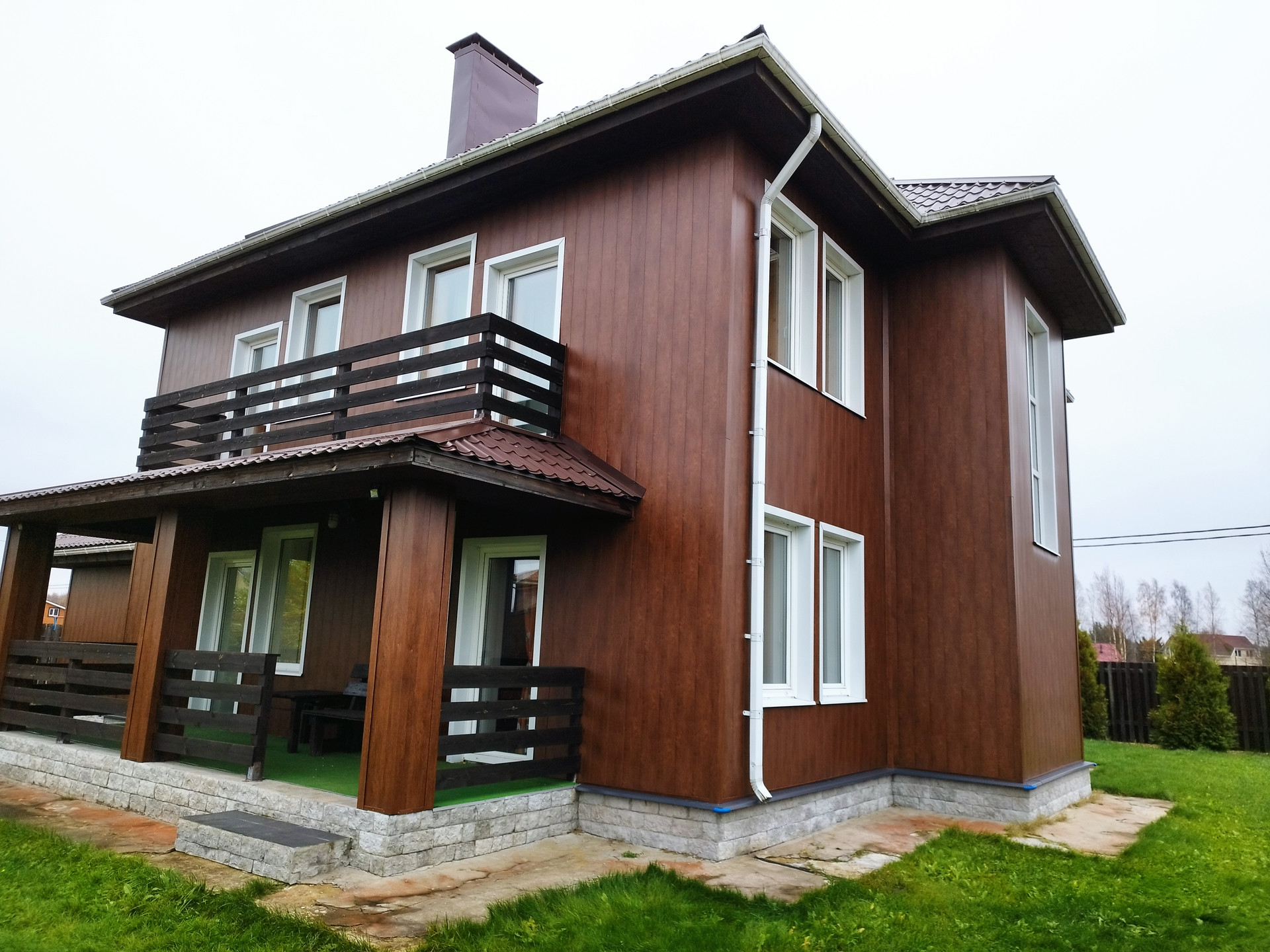 Построен в 2015 году. Фундамент  ж/б плита 300 мм + ростверк 400 мм, стены газобетон 375 мм + утеплитель Rockwool 100 мм, перекрытие ж/б плита 250 мм, потолок 2 этажа -утеплитель Rockwool 300 мм, фасад- металлические панели Grand Line.