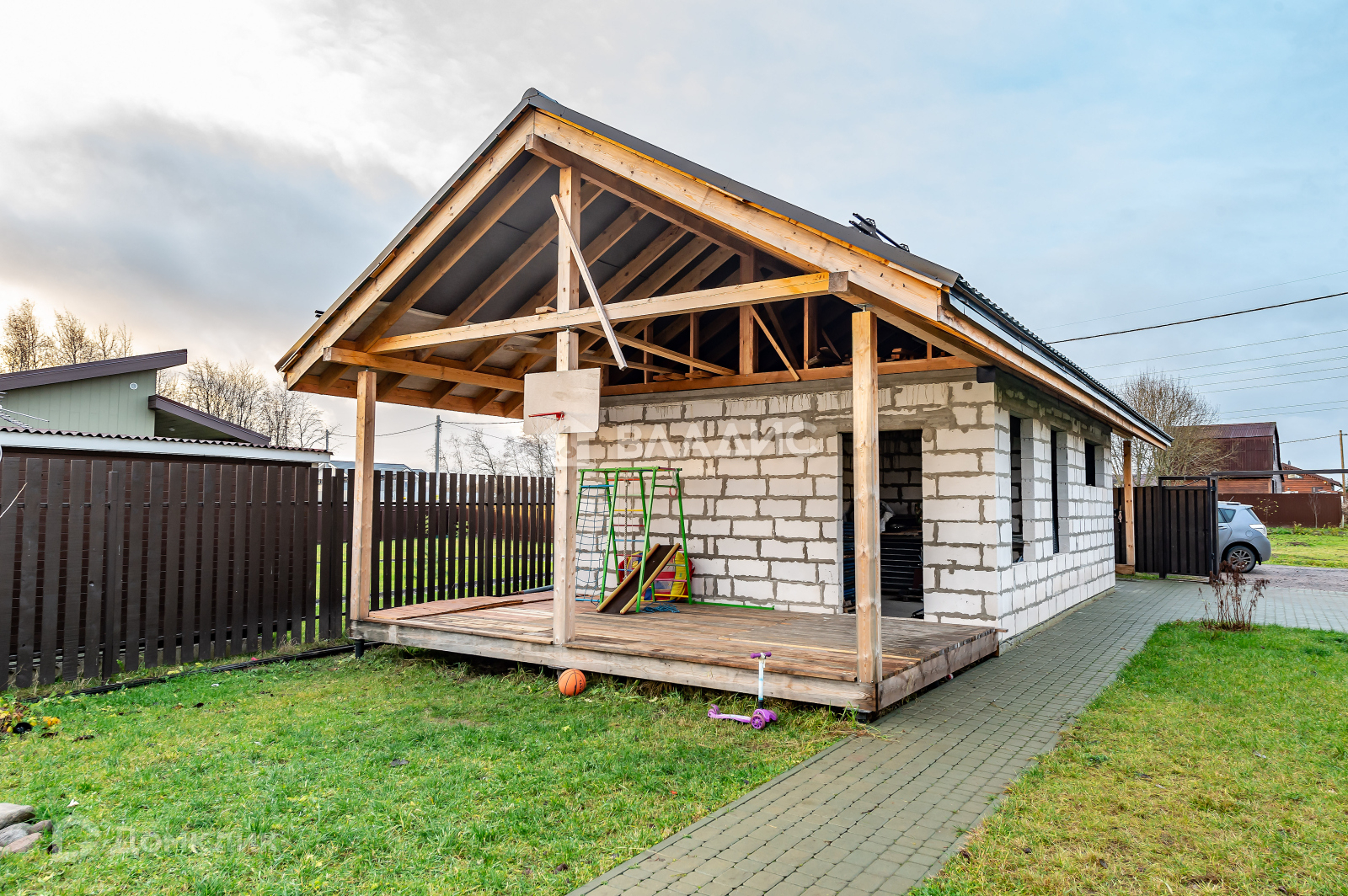 УЧАСТОК - 8 соток. Есть газон, детская площадка, зона для ведения огородничества. На территории строится Баня, просторная, с большой кладовой и навесом. Можно использовать в дальнейшем как гостевой дом.