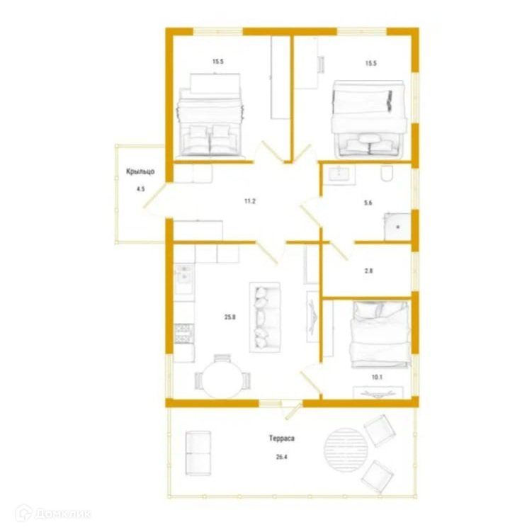 В доме очень удобная и комфортная планировка:кухня/гостинная,3 спальни,СУС.