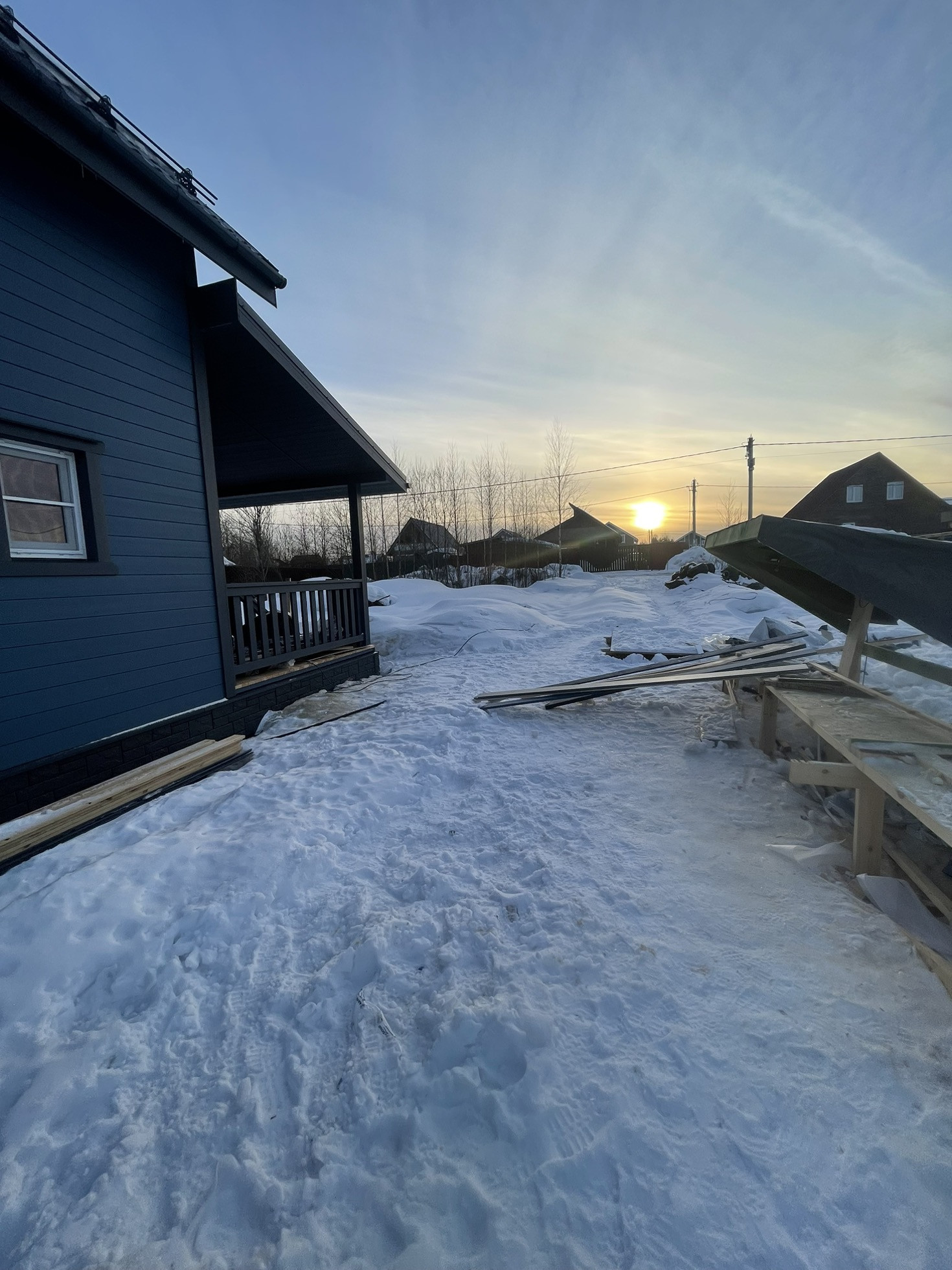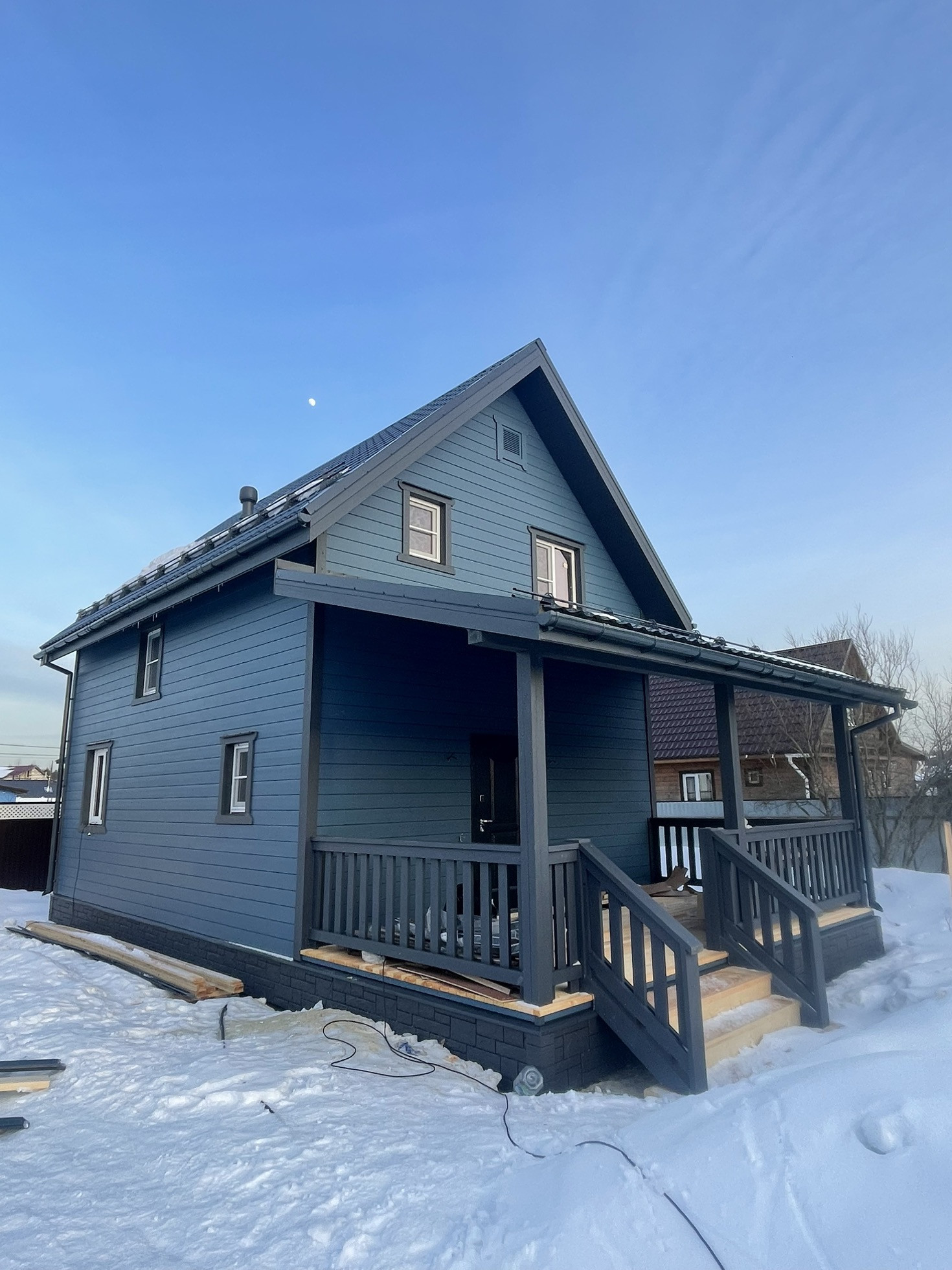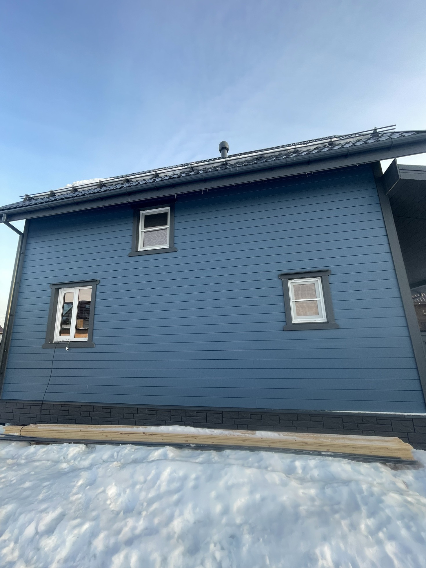 Крыша Металлочерепица Grandline 0,45, на крыше и террасе установлены снегозадержатели.