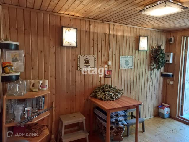 Дом сделан из качественного дерева и обшит стильным сайдингом. Расположен на ленточном фундаменте, что обеспечивает надежную и долговечную конструкцию. На территории есть гараж на 2 места, дровник, баня и даже живописный пруд с карасями. Очень приятно проводить время в уютной беседке, наслаждаясь прекрасными видами на прилегающую территорию.