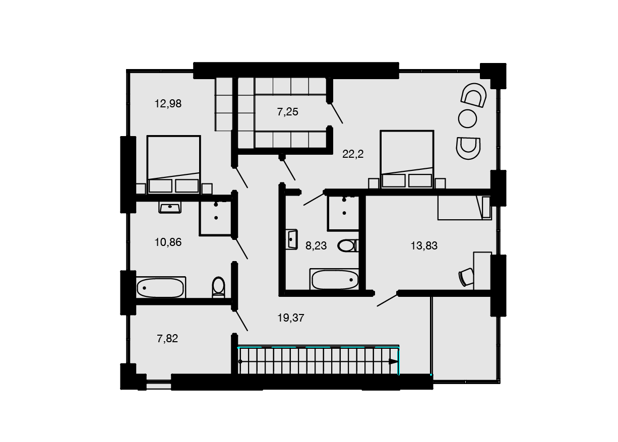 В доме 4 спальни