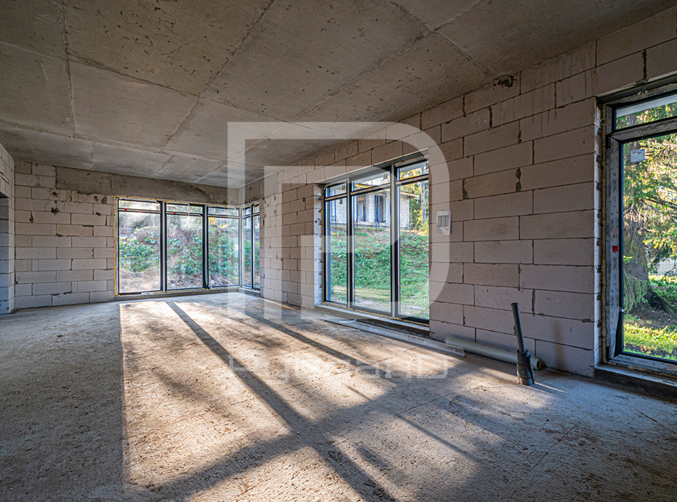 Дом каменный без чистовой отделки, с панорамным остеклением и всеми коммуникациями: