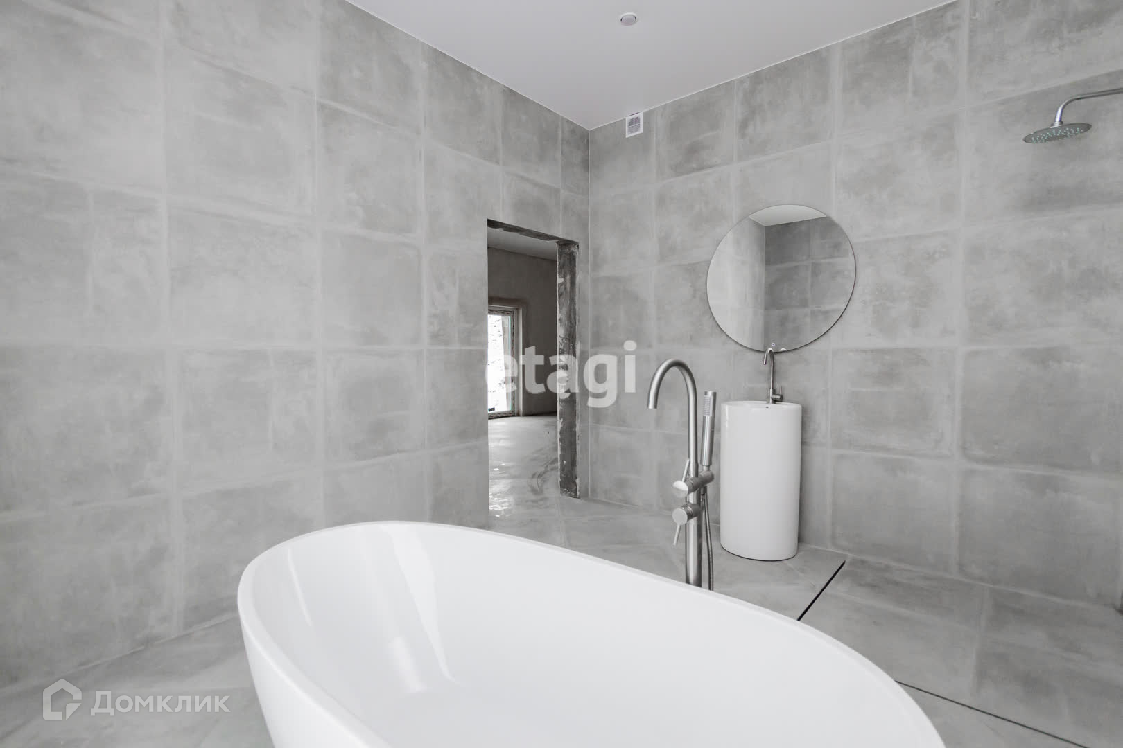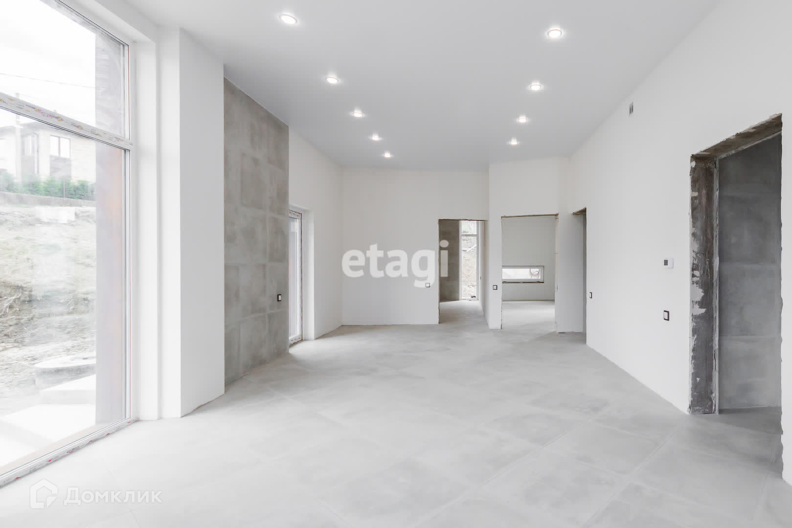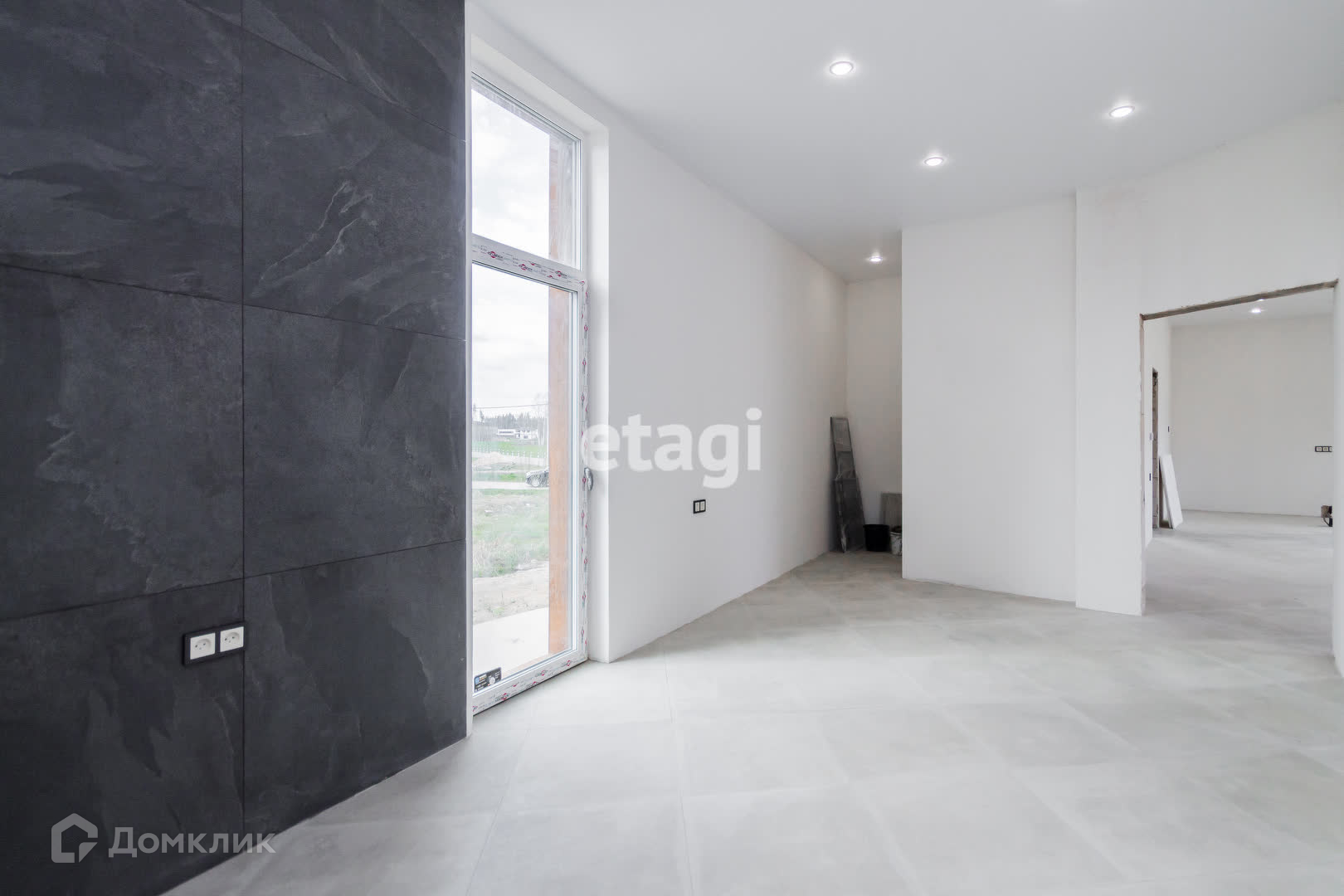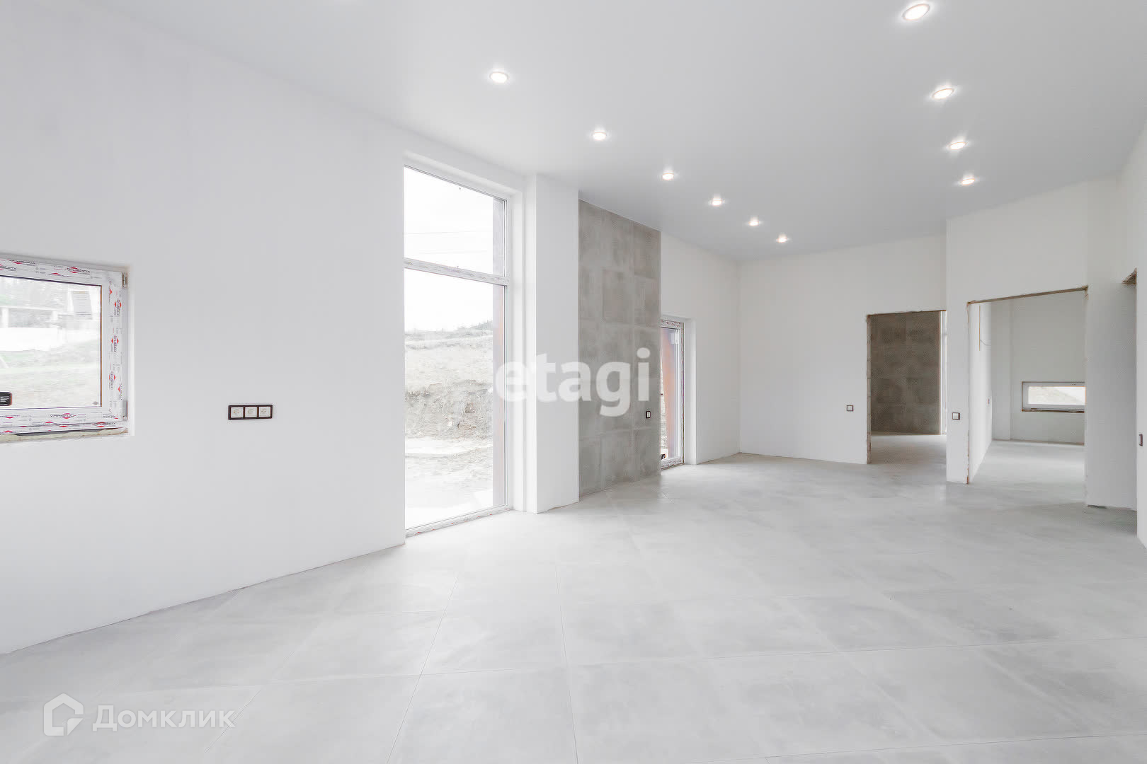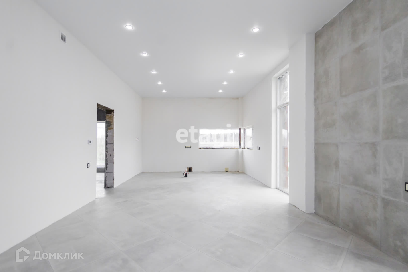 Внутренняя отделка дома выполнена с использованием качественных материалов. На полу уложен керамогранит с подогревом, что придает дому уют и комфорт. Часть стен также оборудована системой подогрева, что позволяет создать дополнительный комфорт в холодное время года. Потолки выполнены из натяжных материалов. Осталось поклеить обои на свой вкус, завести мебель и можно переезжать.