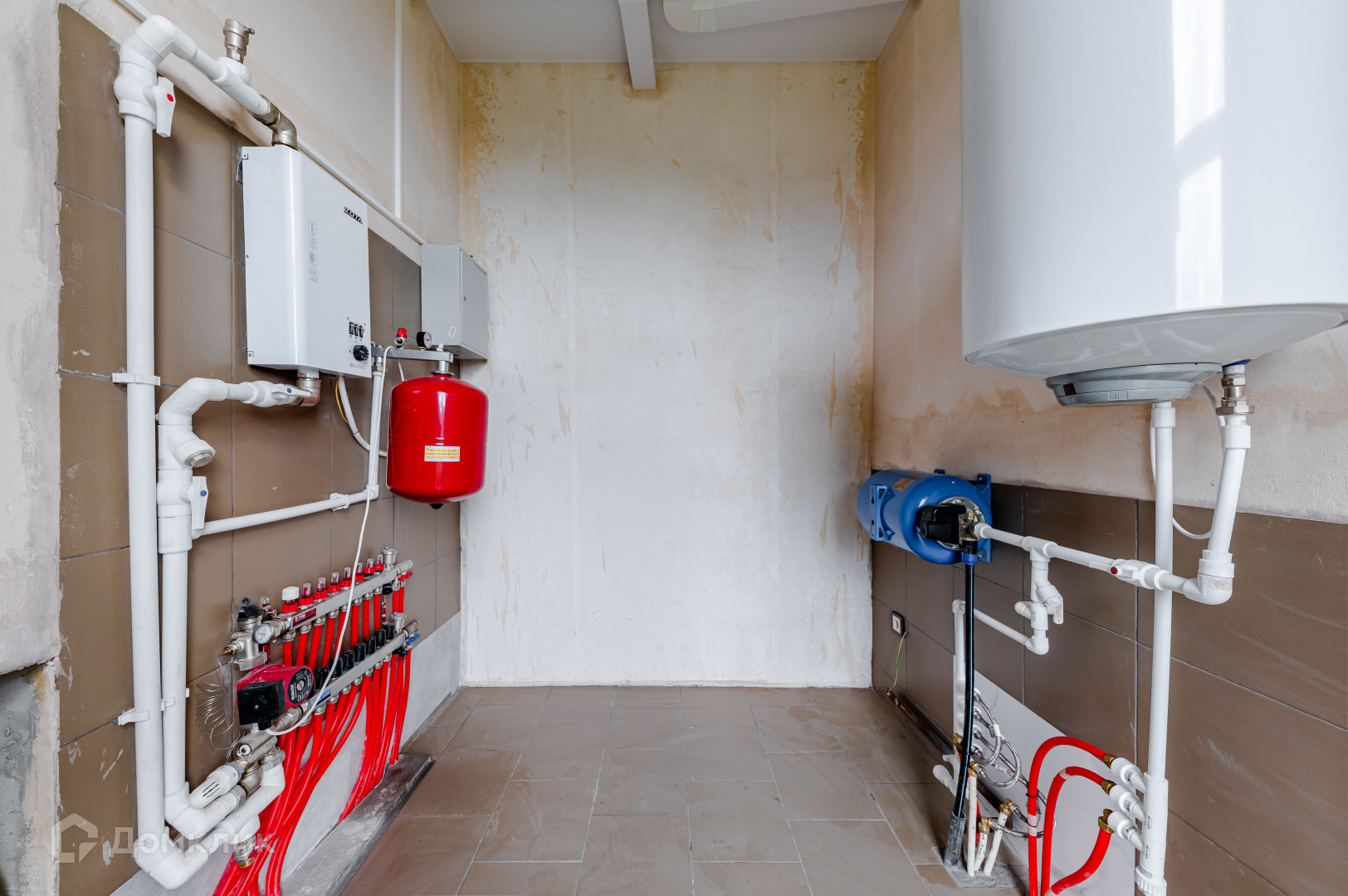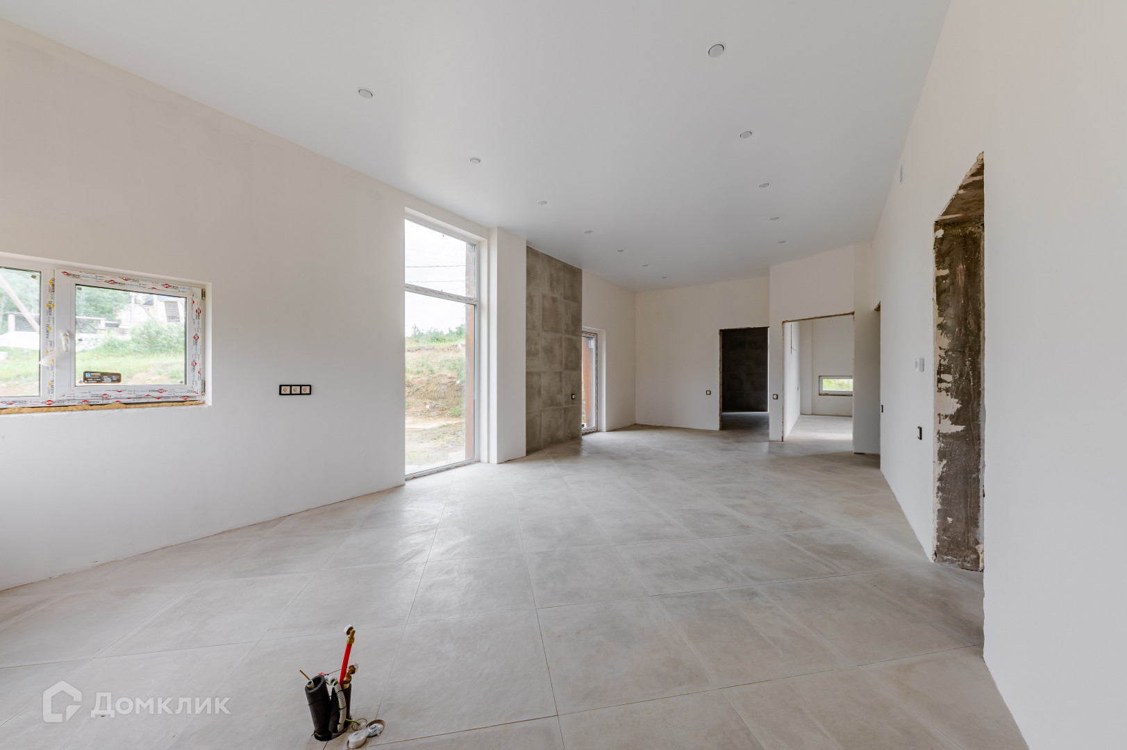 Отделка: На полу уложен керамогранит с подогревом и две стены с системой подогрева. Натяжные потолки, стены выровненные под покраску, стеклопакеты с напылением и хорошей теплоизоляцией и шумоподавлением.