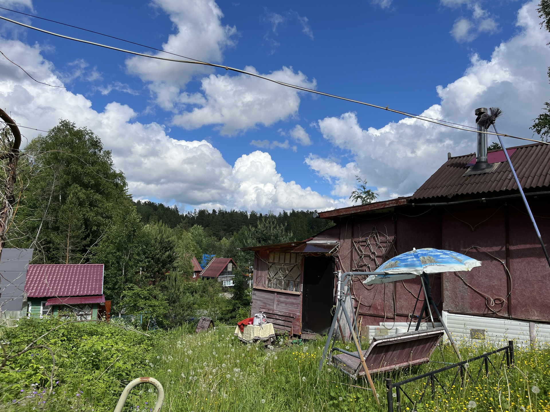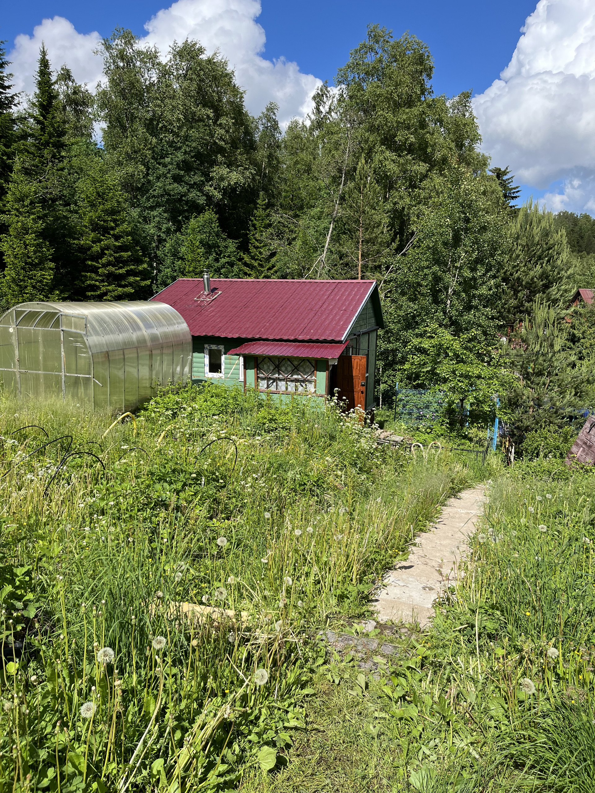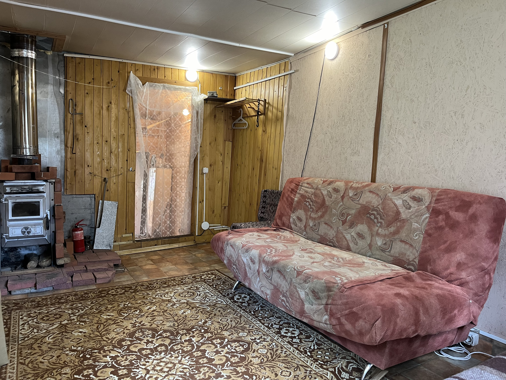 На участке утепленный садовый зимний дом 27 кв м, отопление печное. (Веранда, кухня, комната). Летний водопровод, электричество 3 фазы, 15 кв.