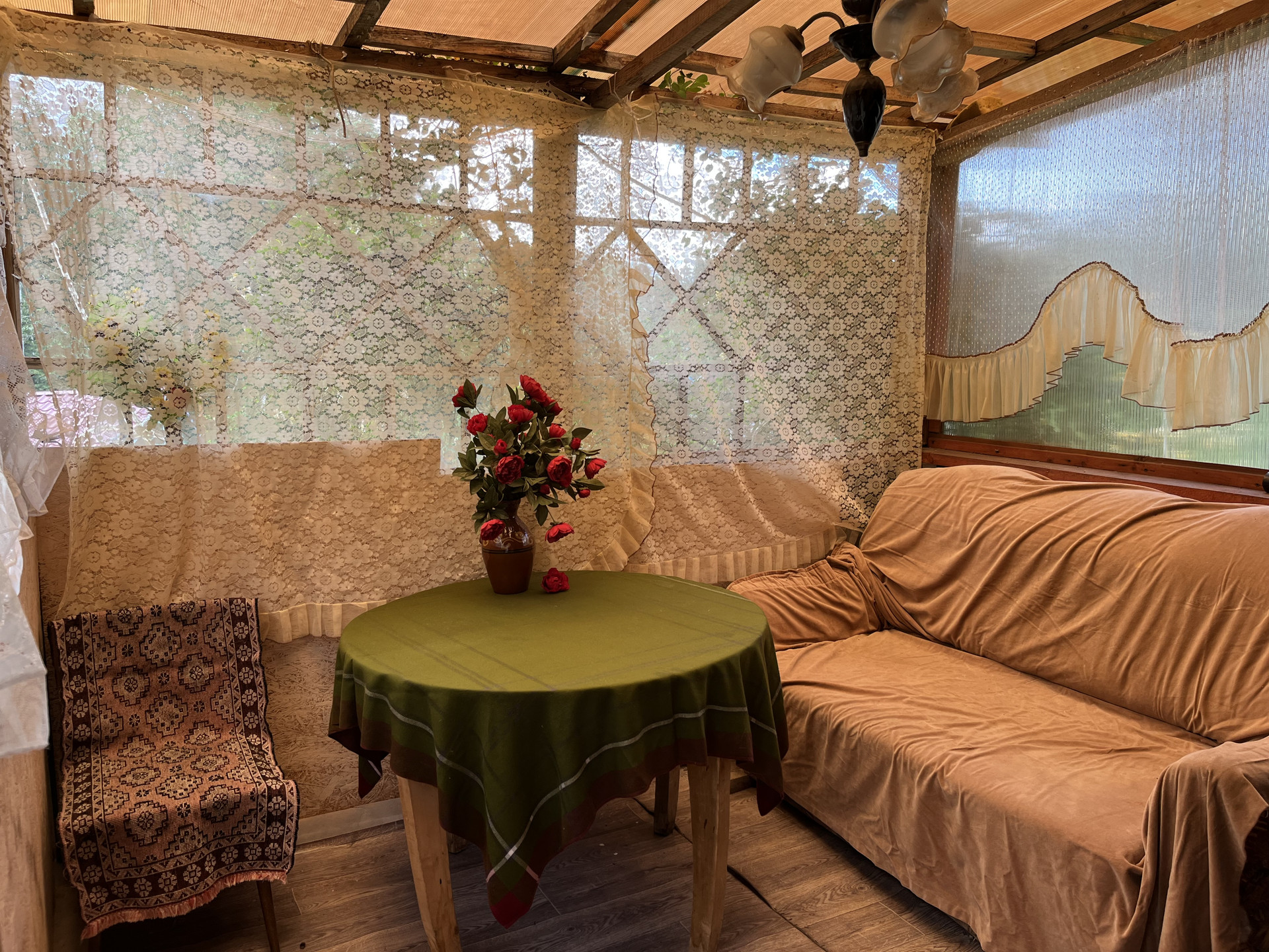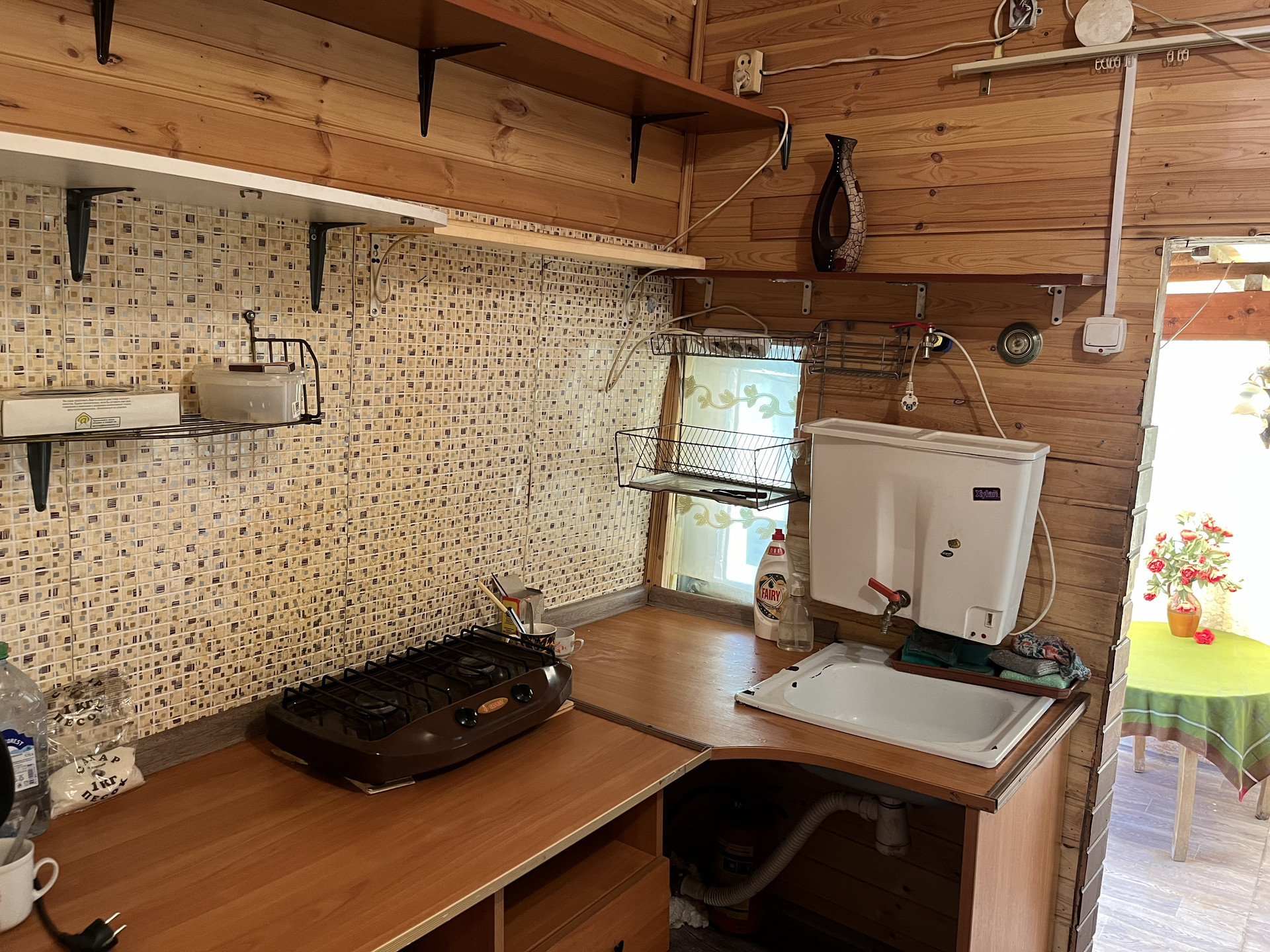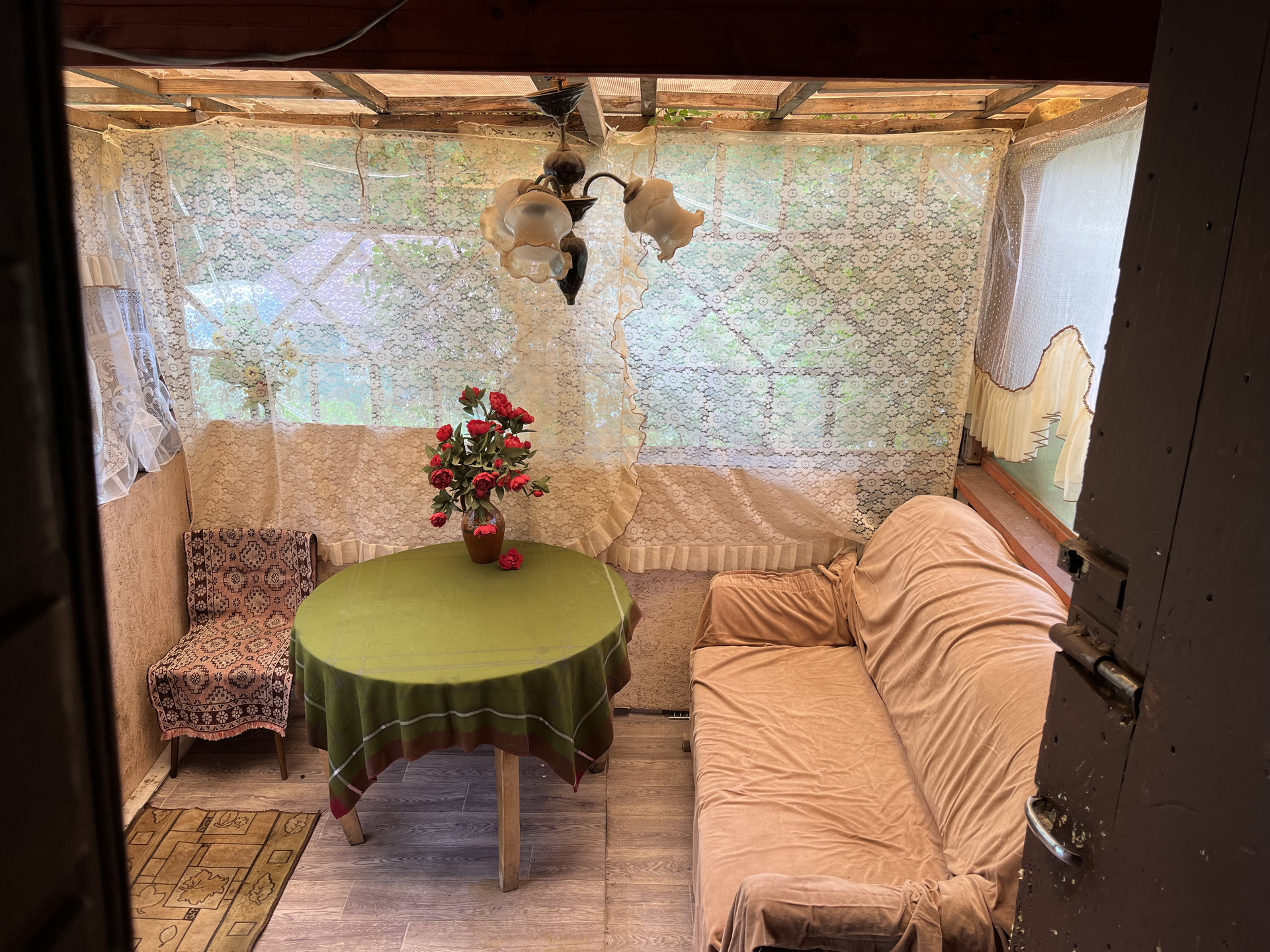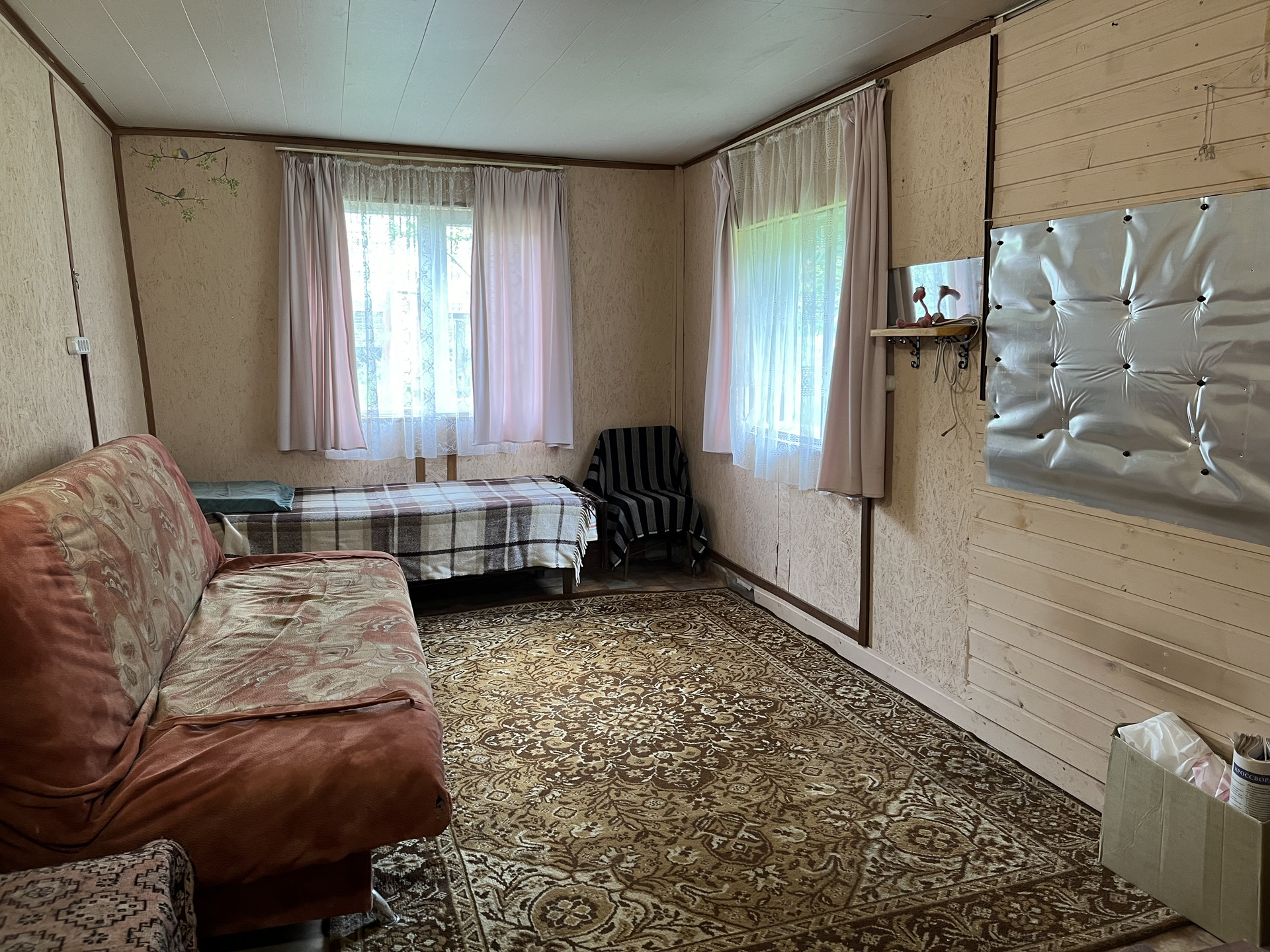 На участке утепленный садовый зимний дом 27 кв м, отопление печное. (Веранда, кухня, комната). Летний водопровод, электричество 3 фазы, 15 кв.