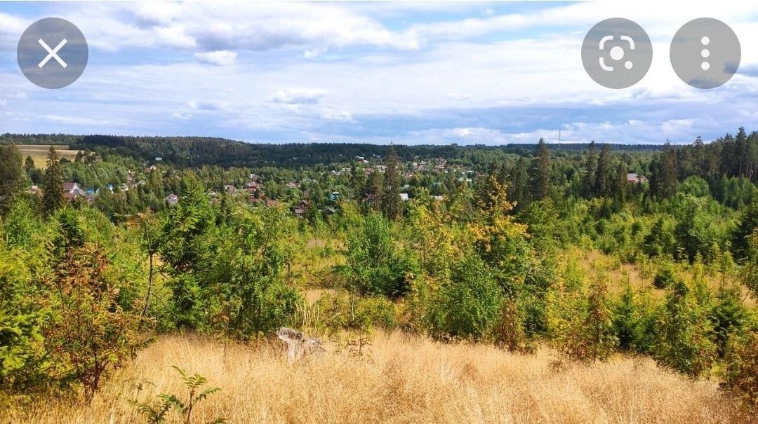 От участка 5 минут пешком до леса и поля. От метро "Проспект Просвещения" на машине 1 час, либо на электричке 1.5 часа и от Сосново на 651 автобусе по расписанию.