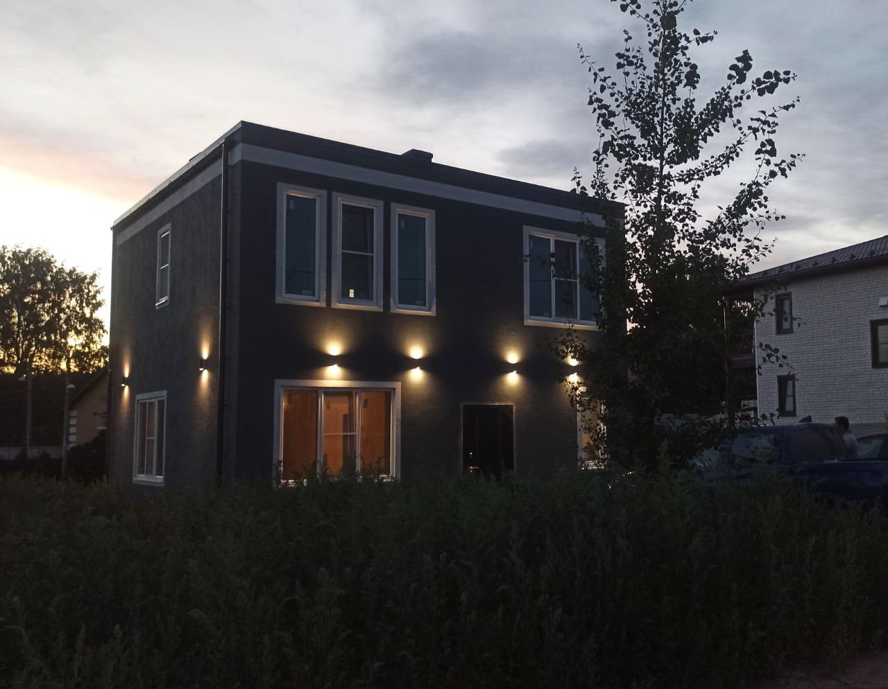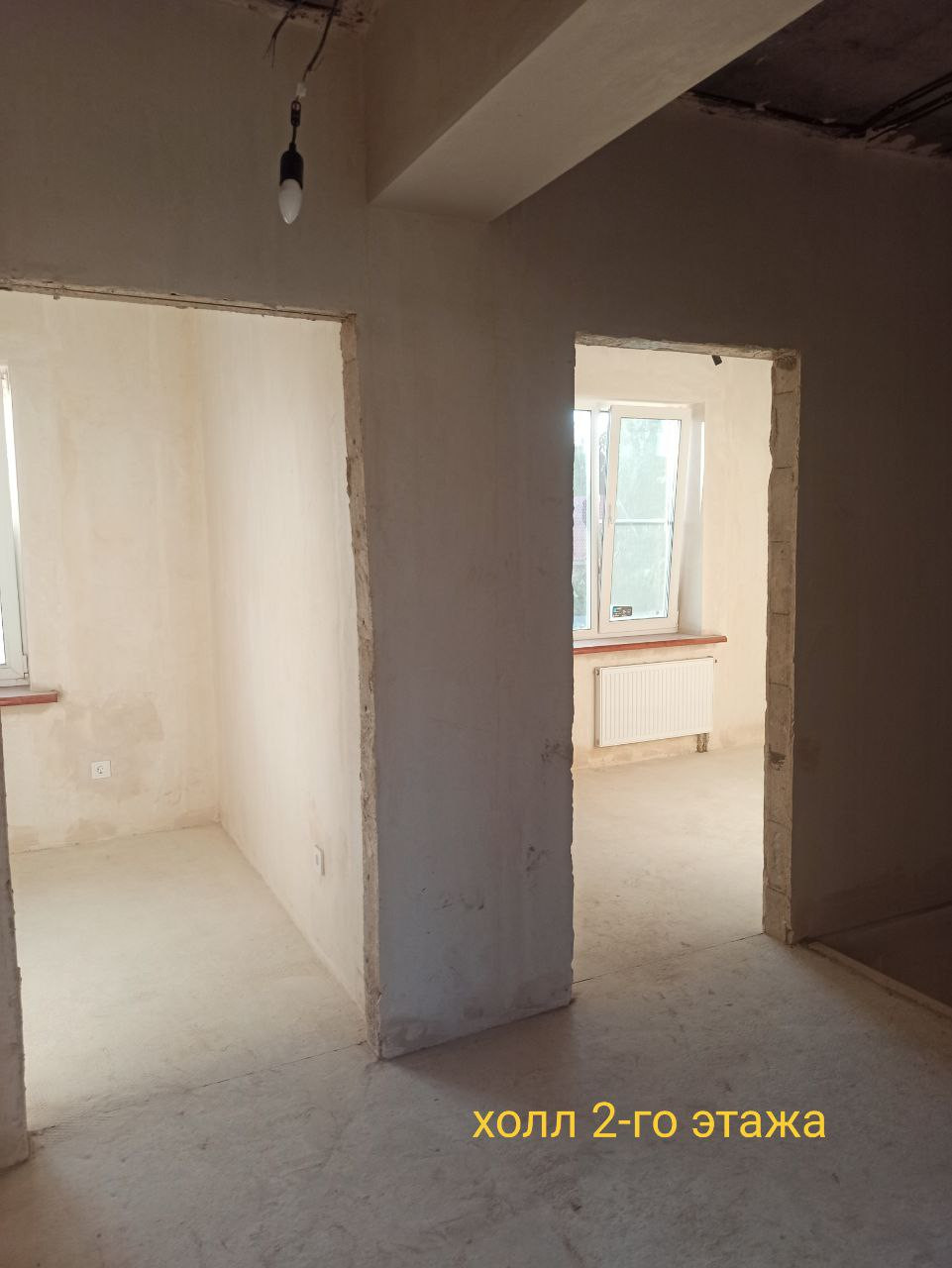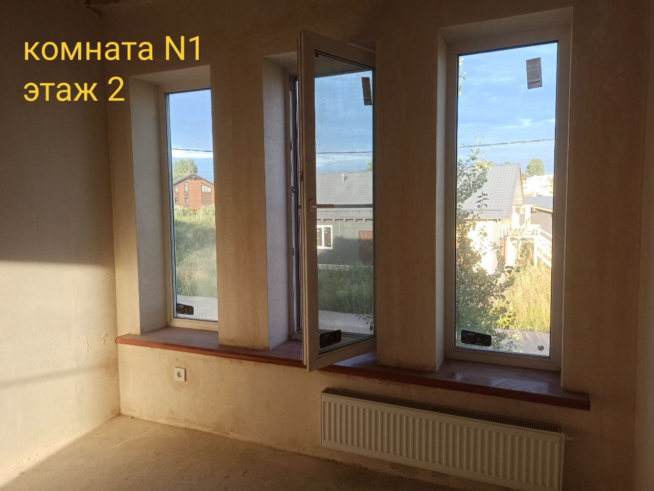 Материал стен - армированные тёплые пенополистирол бетонные панели ( внутри металлокаркас), в помещениях дома проходит вентиляционная шахта из кирпича (никакого гипсокартона), лестница - заливной монолит (никакого дерева), крыша гидроизолирована и готова к эксплуатации, отопление - радиаторы, окна выполнены из высококачественного материала с функцией энергосбережения, перекрытия - бетонные плиты перекрытия (не дерево!), толщиной 30 см, толщина внешних стен 30 см. Фундамент - монолитная плита 25 см. На участке установлен септик вместимостью 2 куба, и скважина.