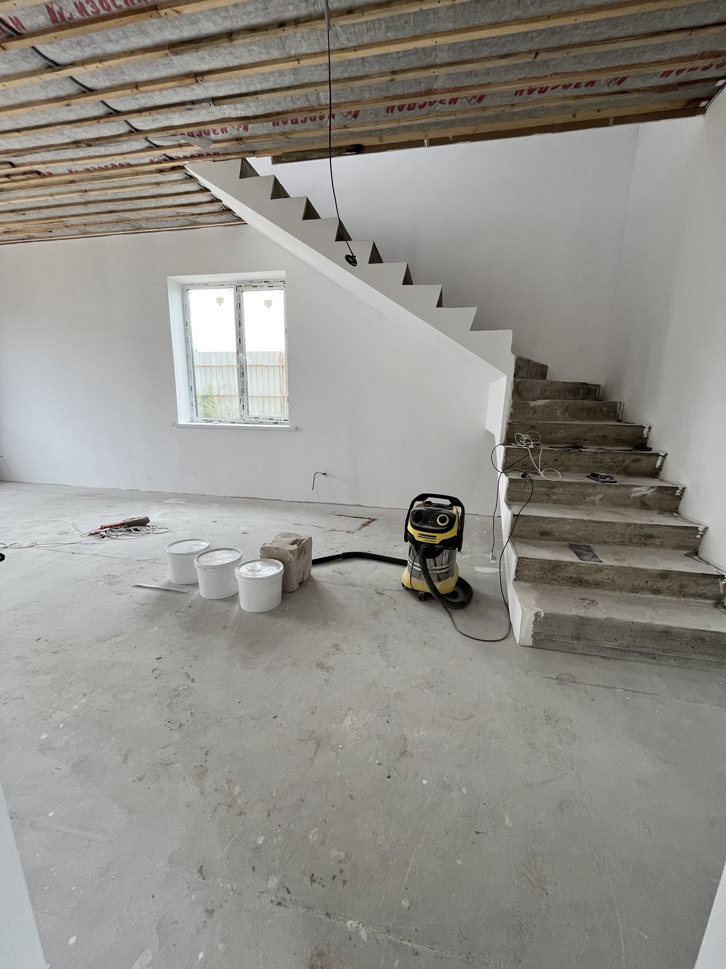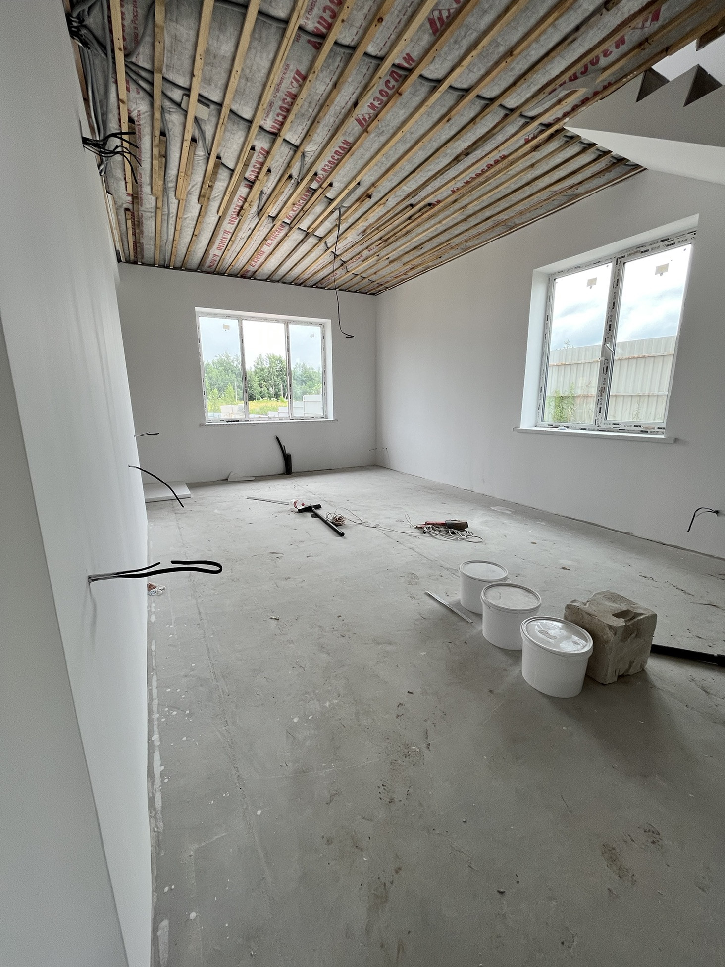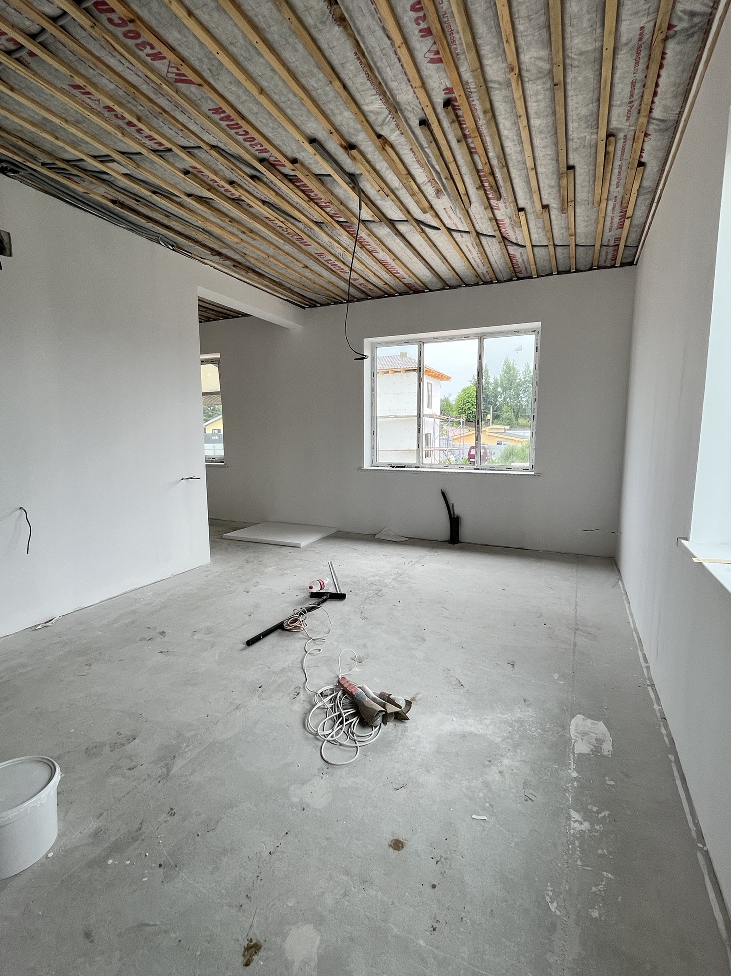 - на 1м этаже в полу разведен водяной пол, залита стяжка.