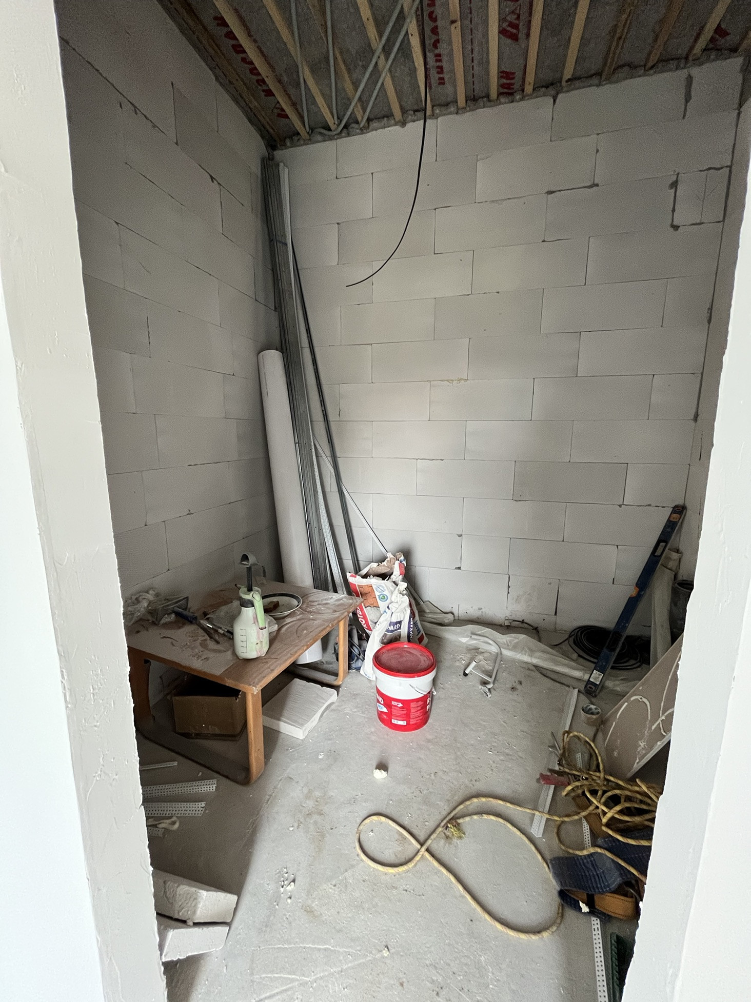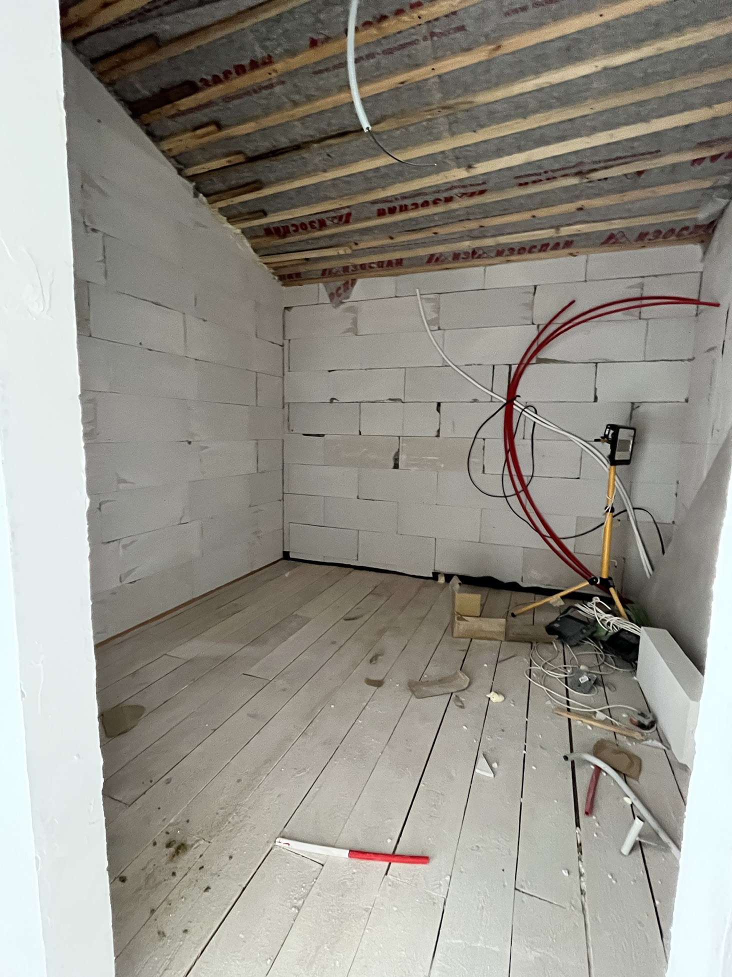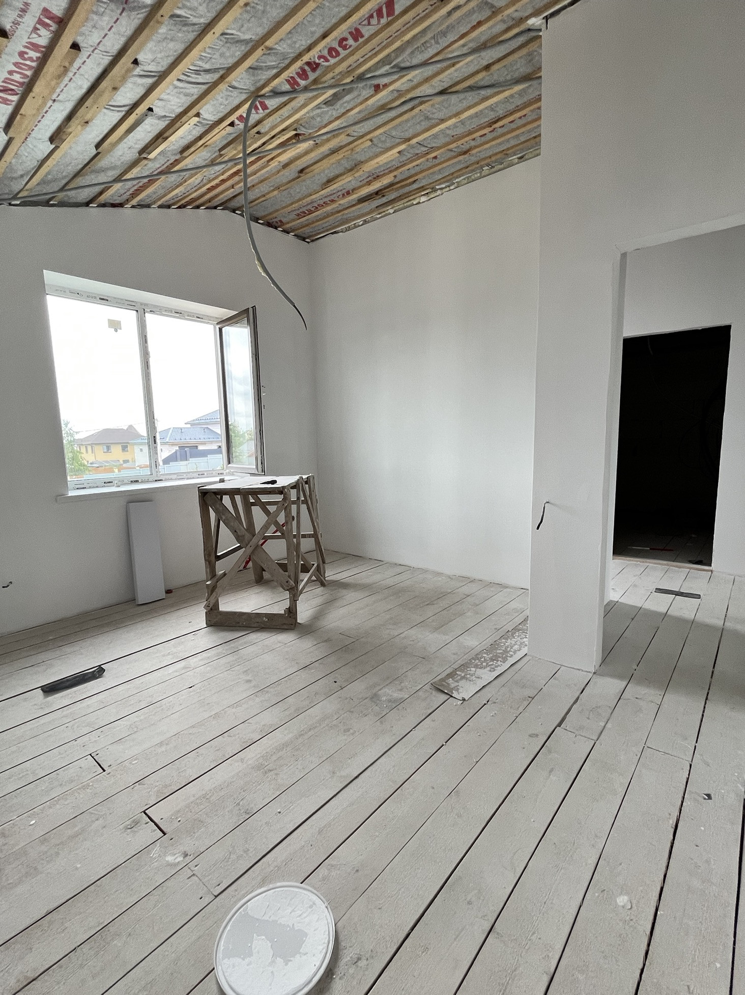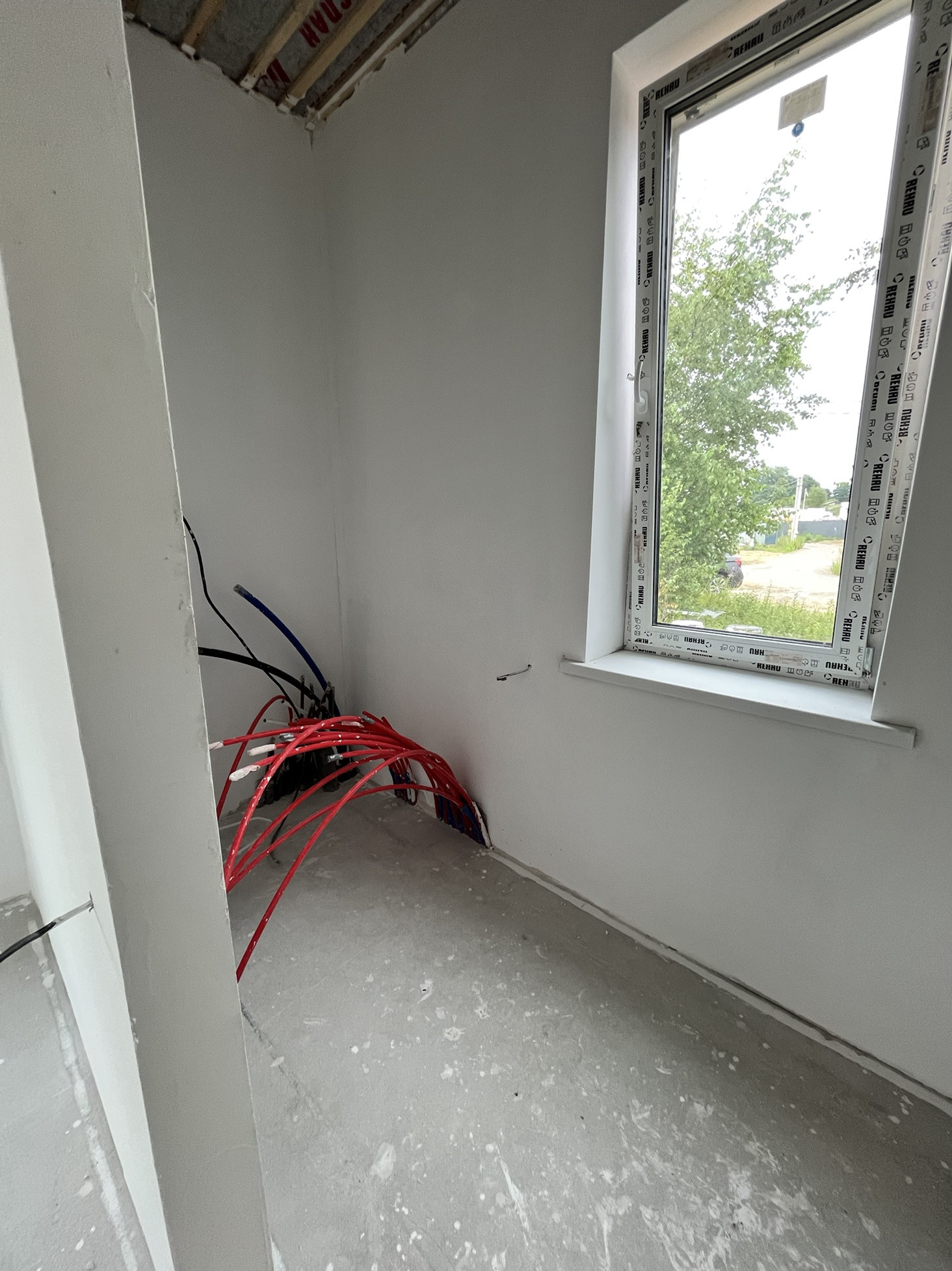- на 1м этаже в полу разведен водяной пол, залита стяжка.