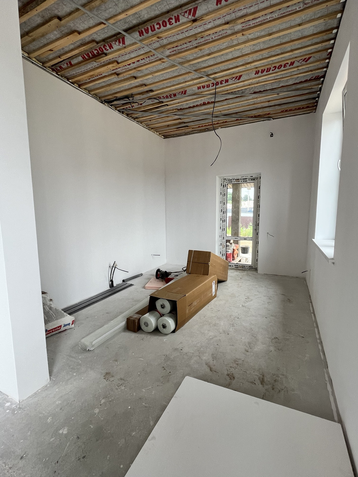 Так же сделана полная предчистовая отделка с помощью гипрока и финишной шпаклевки. Стены и пол полностью готовы к отделке финишными материалами.