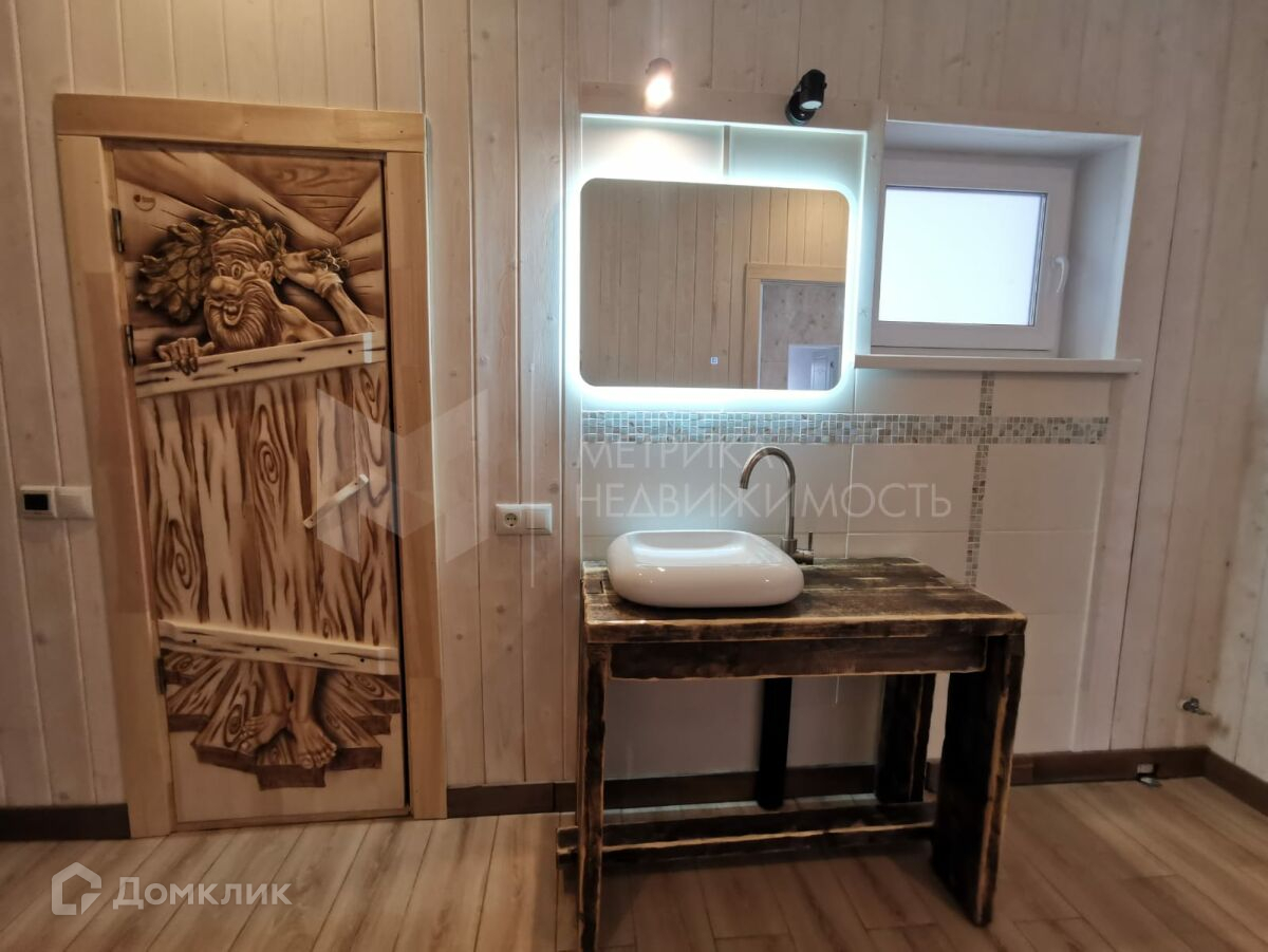 Большой каминный зал, около 80м2, камин со стёклами с трех сторон, три спальных ком., 2 санузла/душа, банька на дровах (10м2),прихожая,тех.помещение. Использование полезной площади и вспомогательных площадей 94%/6%. Очень тёплый дом с хорошей вентиляцией. Содержание дома обходиться около 4000р./мес. 400 метров грунтовая дорога.