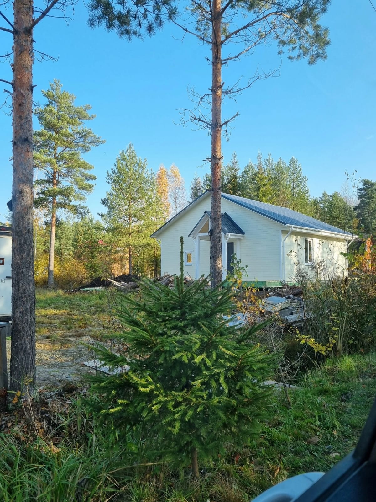 На участке оставлены по границе с соседом молодые сосны и кусты черники под ними, для тех кто любит природу, сосновый аромат, чистый воздух и не любит любопытных глаз.