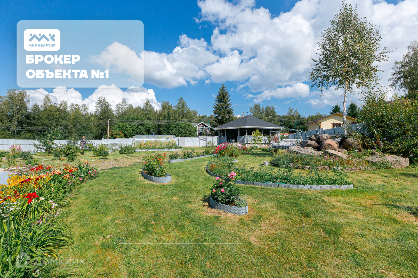 На участке построен дом, хозяйственный дом-беседка, баня. Основной дом сложен из правильного бревна. Щелей нет, тёплый, экономичный двухэтажный дом оснащён электричеством, водой из собственной скважины (вода проверена, паспорт есть), дизельным и электрическим котлами отопления. Вся отделка из натурального дерева. Полностью оснащённая кухня, совмещённый санузел.
