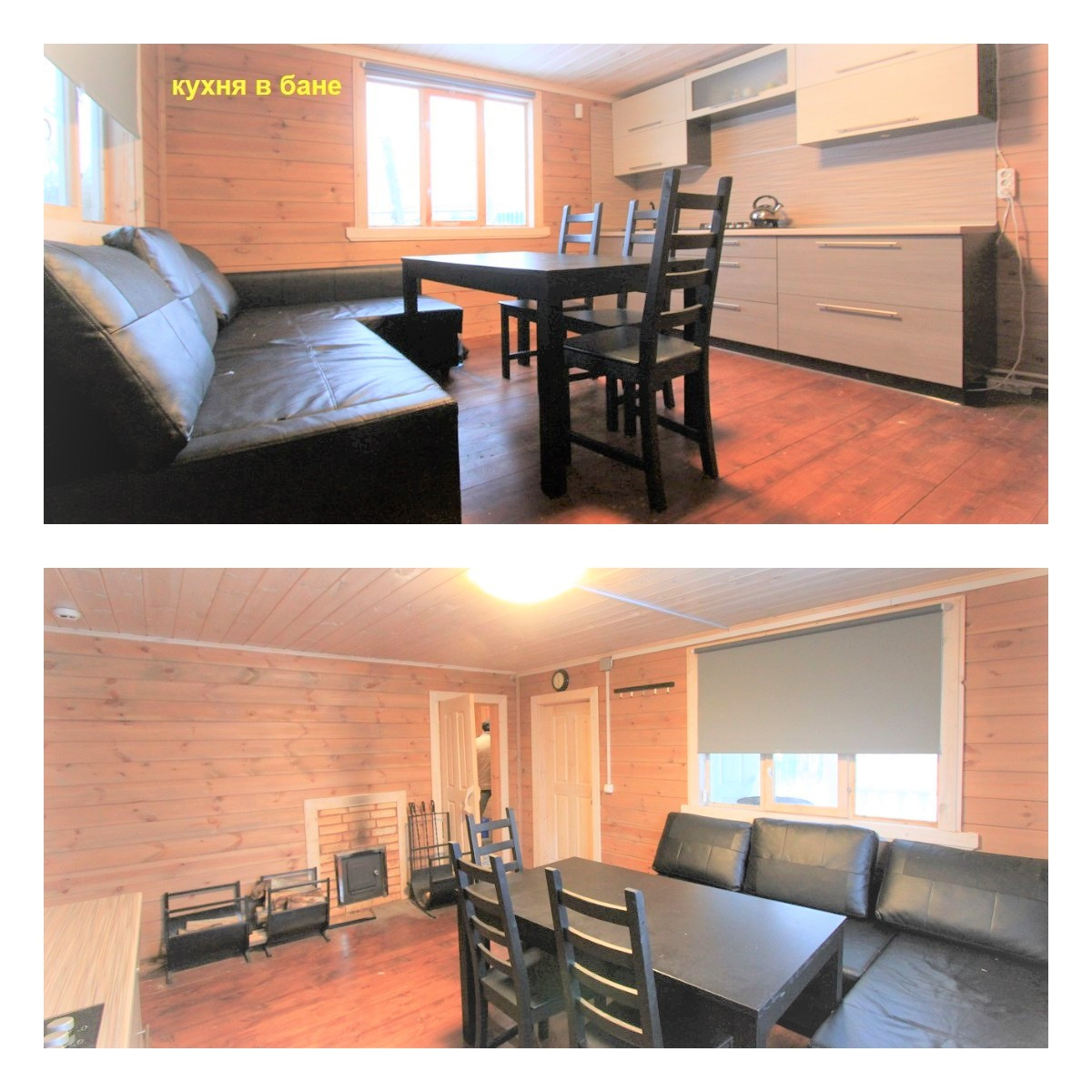 Баня на дровах: Построена из бруса, имеет сваечный фундамент. Внутри расположена кухня-гостиная, парная, помывочная и хозяйственная комната. Отапливается электричеством.