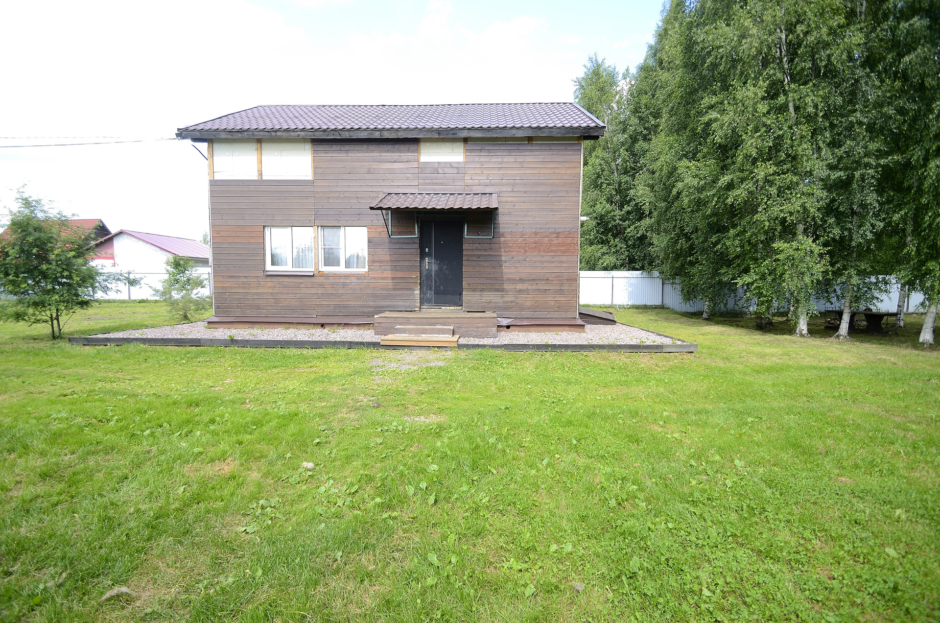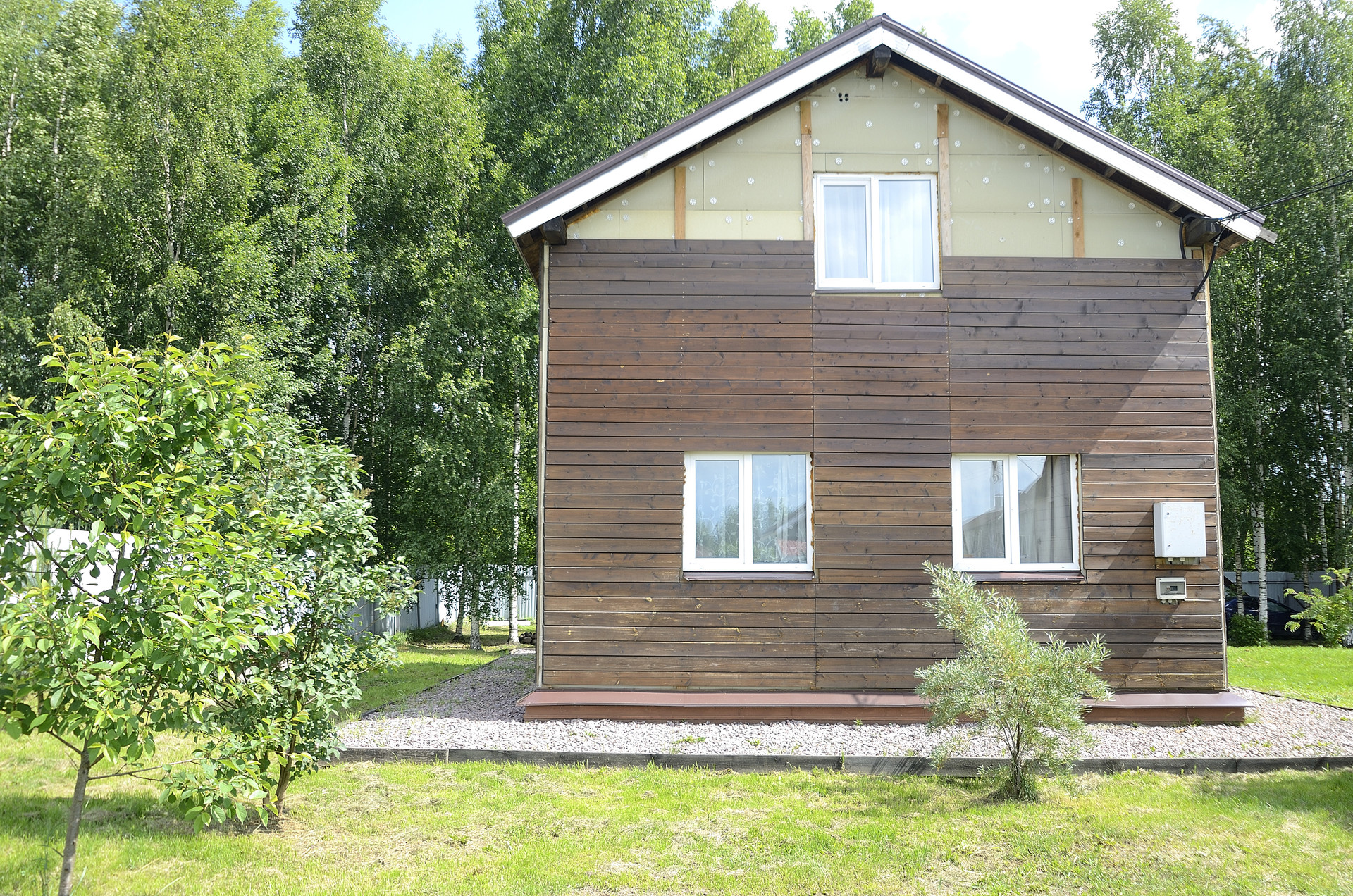 Дом выполнен из Cип-пaнeлей. Утеплитель стен, пола и потолка 200. Фундамент ленточный, 80 см из утепленного бетона + металлические сваи с бетонным наполнением. Фасад дополнительно утеплен и обшит новой евровагонкой, есть материал для завершения фасадных работ.