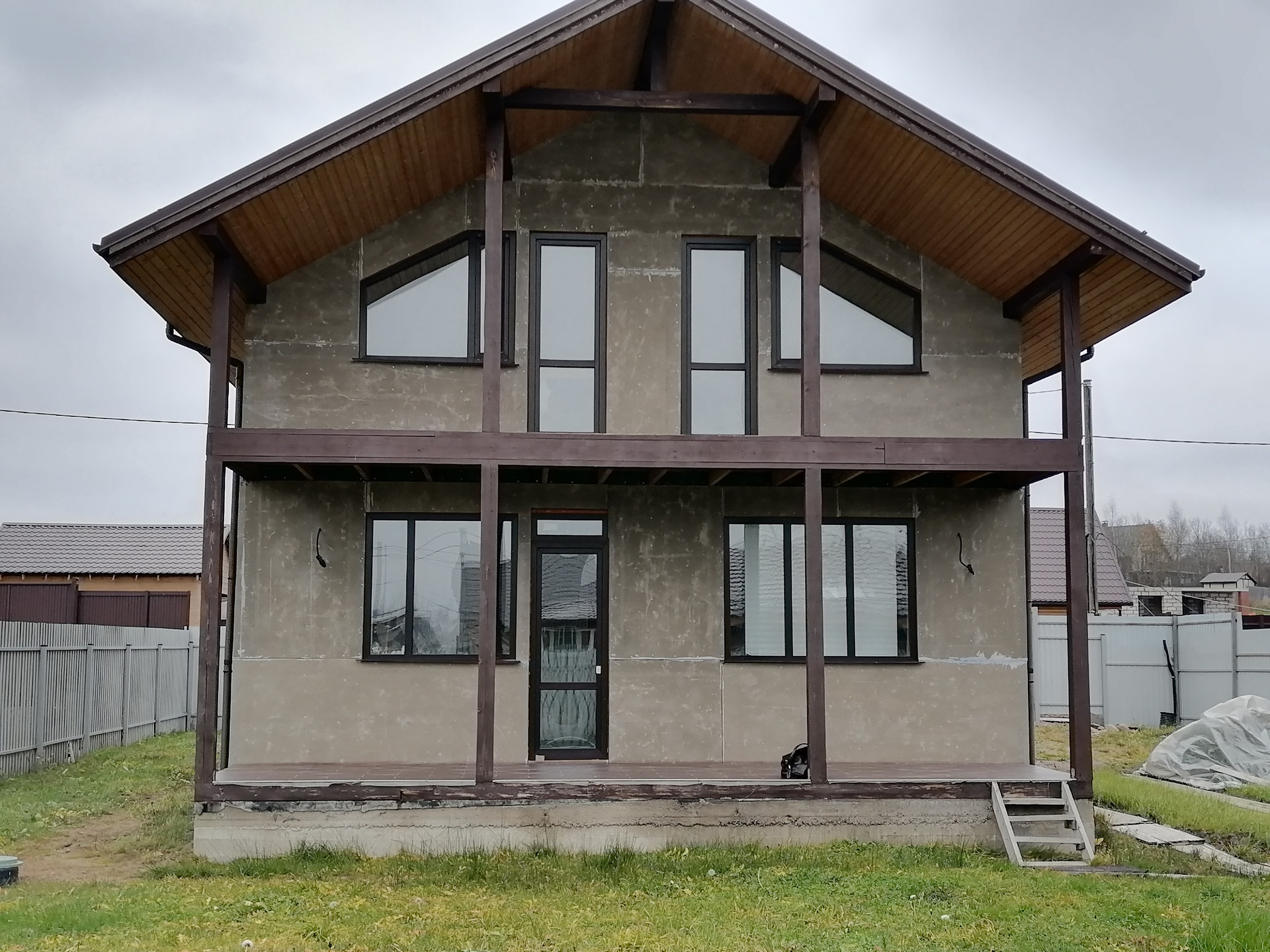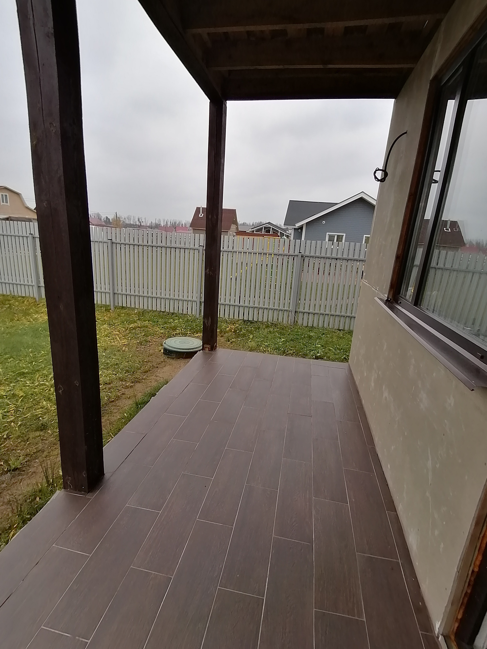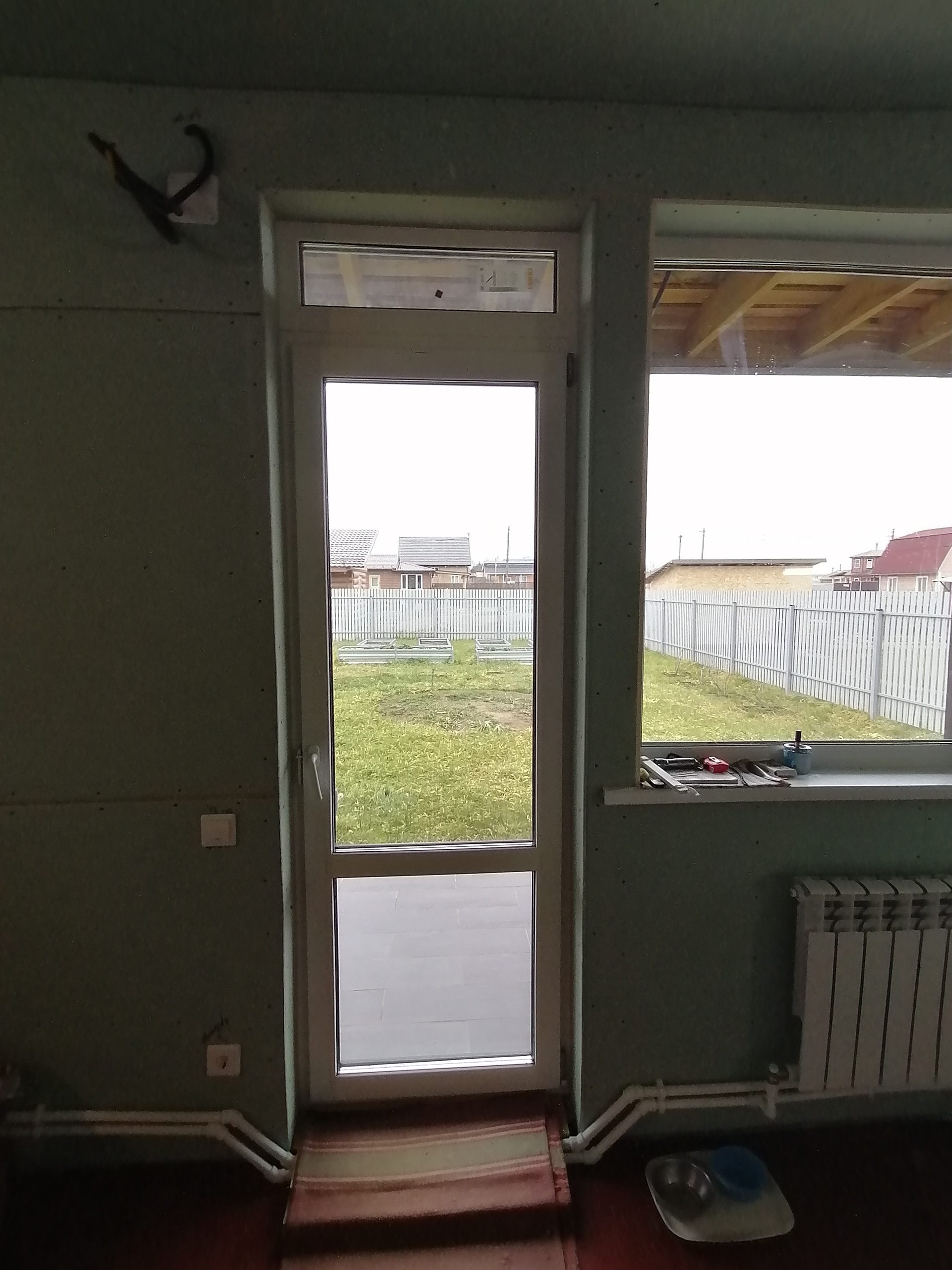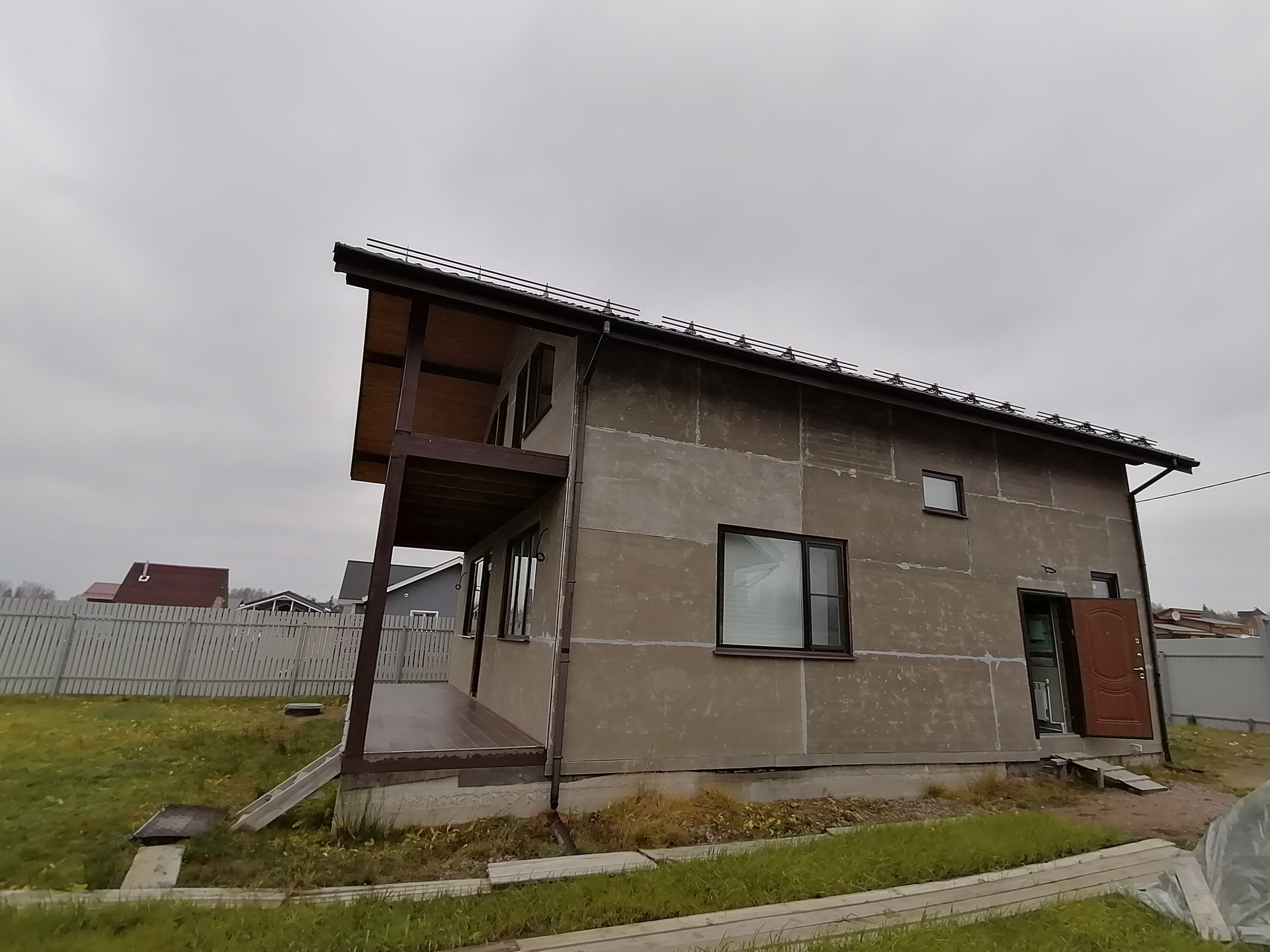 на 1 этаже -большая кухня-гостиная 30м., комната 9.2м., сан узел 6м., хоз помещение, котельная, большая веранда.