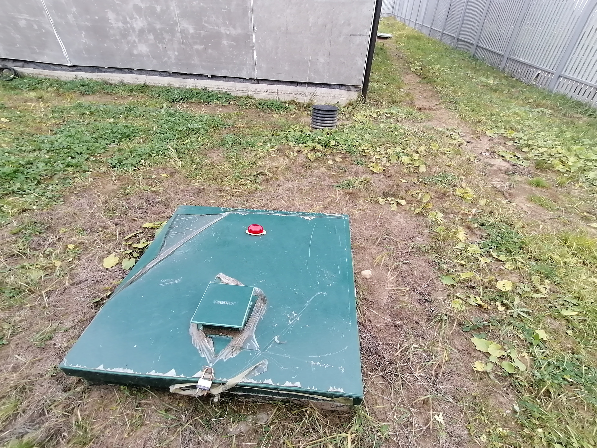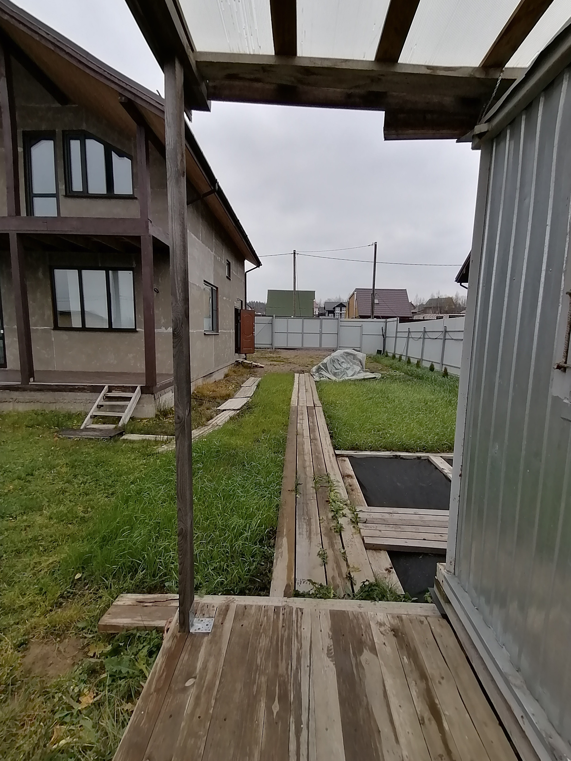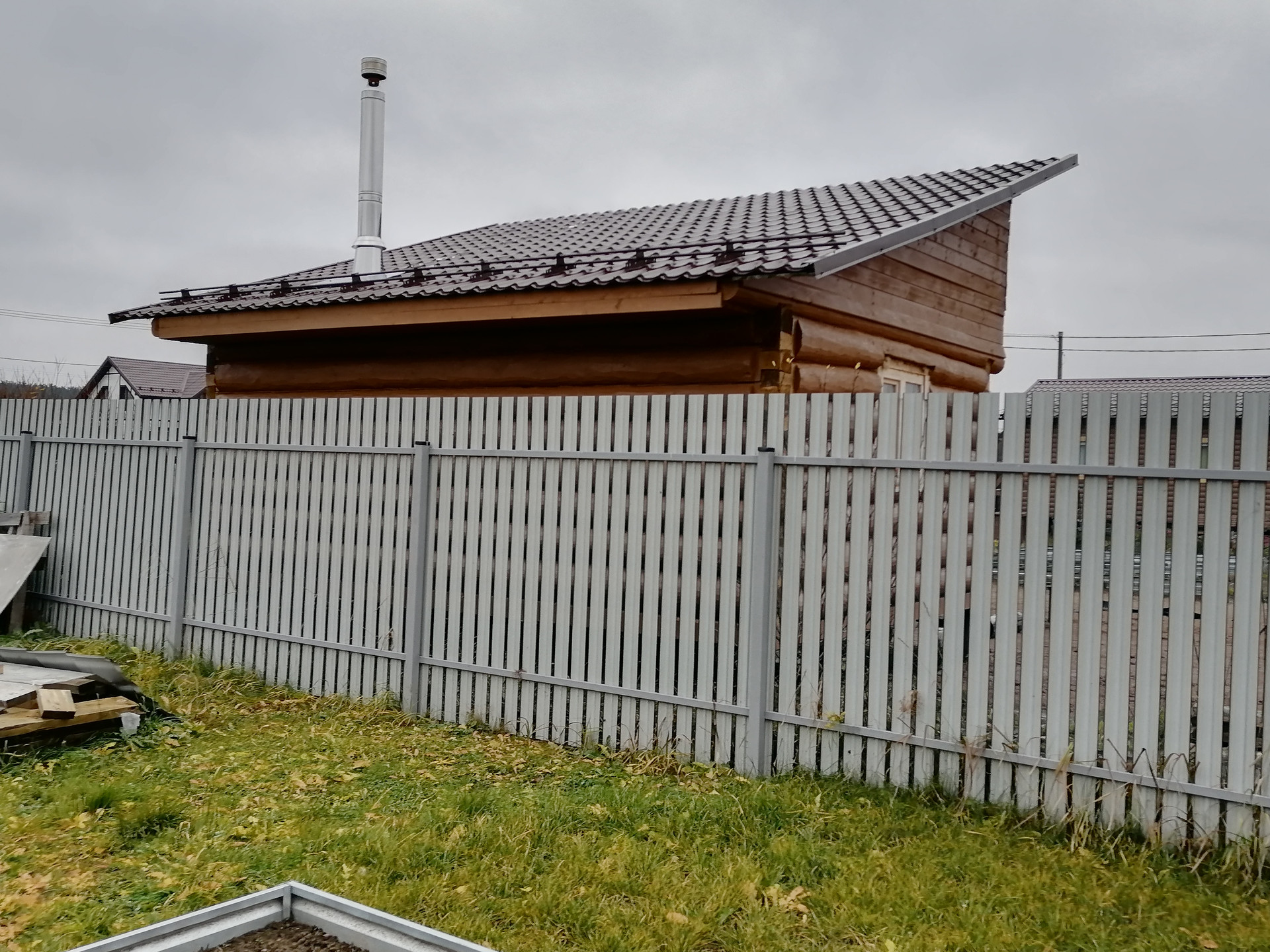 Забор металлоштакетник + откатные ворота. На участке стоит вагончик (две комнаты, кухня)!