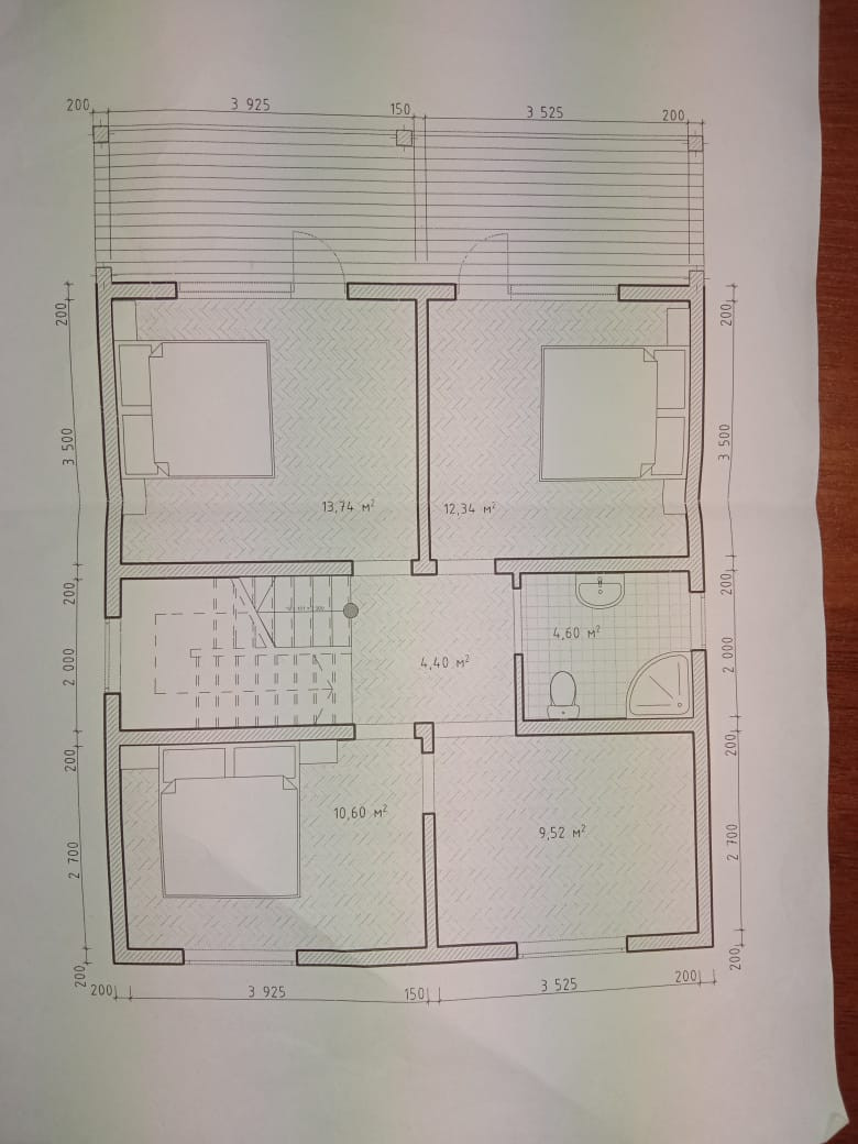 на 2 этаже четыре изолированные комнаты площадью 13.7м.+12.3м.+10.6м.+9.5м., сан узел 4м., балкон.