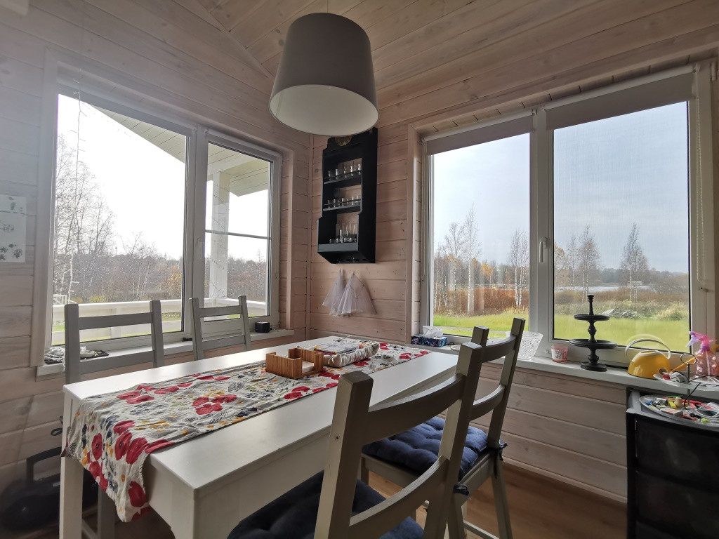 С панорамных окон гостиной перед вами открывается прекрасный вид на благоустроенный участок и озеро. Звоните, все прелести и подробности расскажу по телефону.
