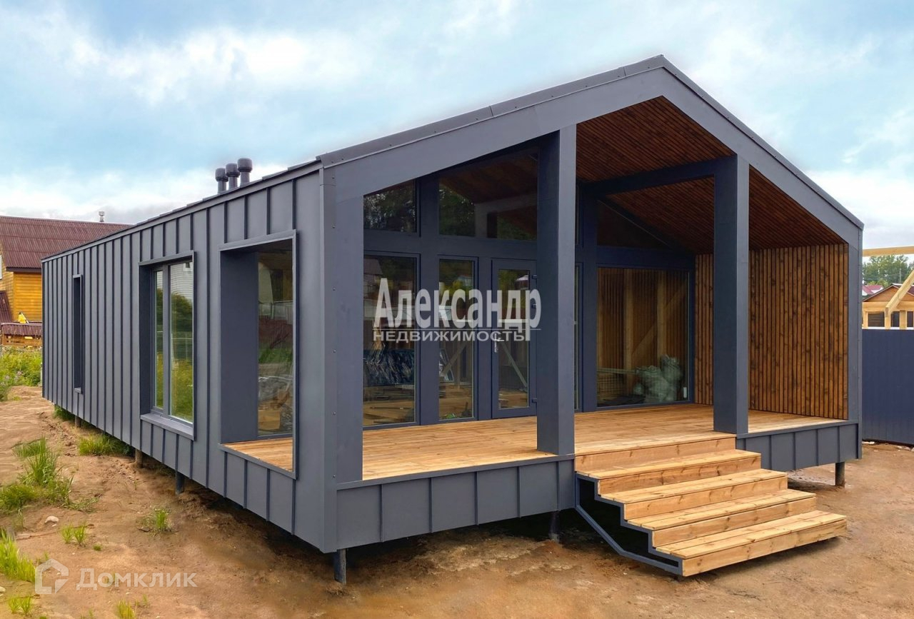 Дом площадью 112,5 кв.м., построен из современных материалов в стиле БарнХаус. Это набирающий обороты архитектурный тренд загородного строительства, который начинает завоёвывать отечественный рынок недвижимости. Особенности такого дома: прямоугольная конструкция; острая двускатная кровля, без свесов; панорамные окна; просторное пространство гостиной-столовой; свободная планировка: кухня-гостиная, 2 спальни 16+16 кв.м., совмещённый санузел, прихожая, 2 террасы 18,2 и 3,75 кв.м.;  материалы постройки - дерево и металл. На участке центральный водопровод от двух артезианских скважин, электричество 15 кВт.