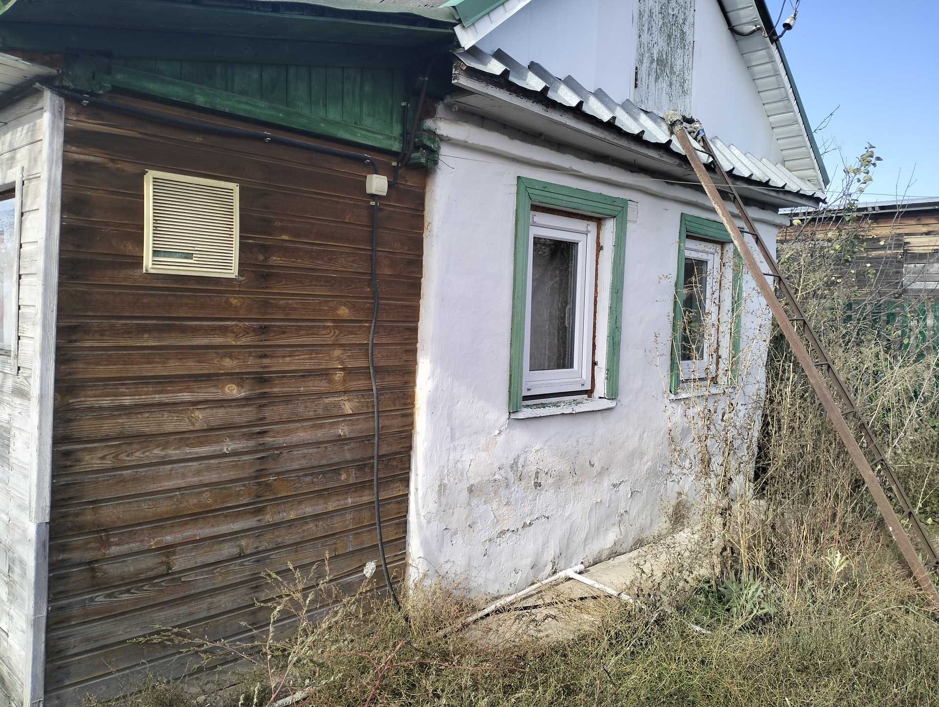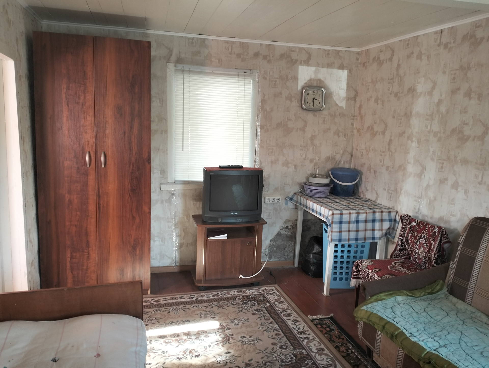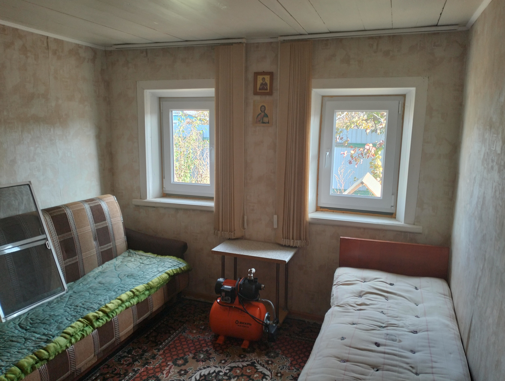 - жилой дом 35м2 (кирпичный) - жилая комната с террасой и верандой, В доме есть вода (из скважины), канализация (есть сливная яма), электричество.