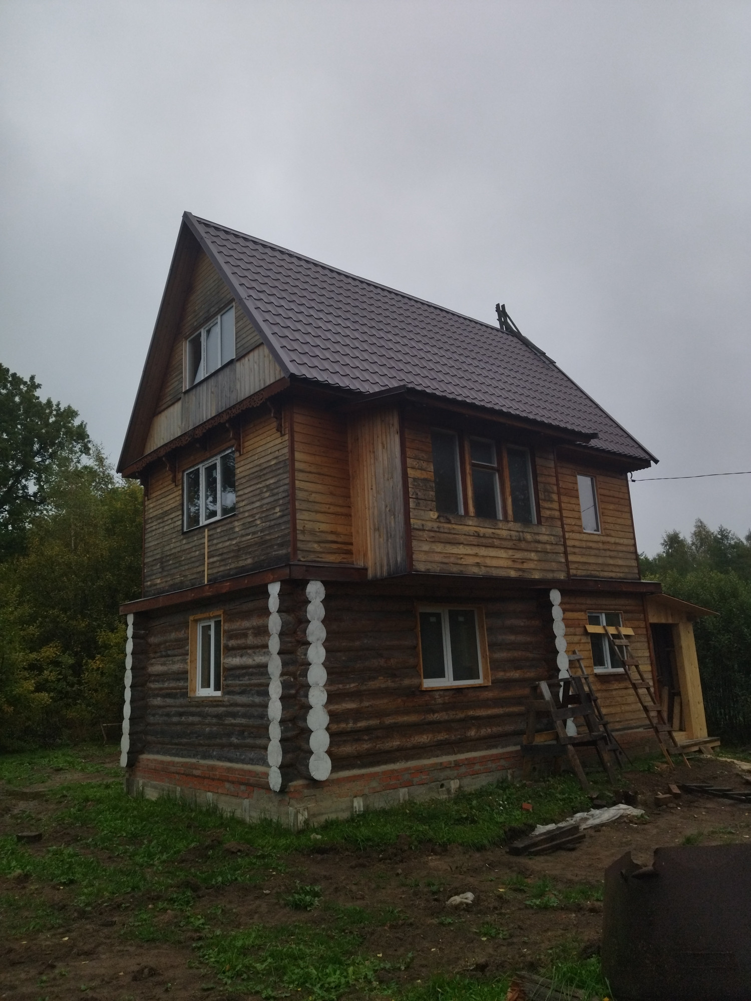 Жилой бревенчатый дом (год постройки 2018) общей площадью 63,5 кв.м. Фактически три этажа. Земельный участок площадью 15 соток, участок замежеван, кадастровый номер: 40:14:120712:20, разрешенное использование: индивидуальное жилищное строительство. Имеется собственный колодец, но вода не заведена в дом, выкопаны два колодца под септик, отопление в доме сейчас никакого нет, газ, электричество 7 квт на напряжение 0,23. На участке имеется небольшой гараж. Калужская область, г. Медынь, ул. Бурвикова, д.8. Цена 3 000 000 руб. торг