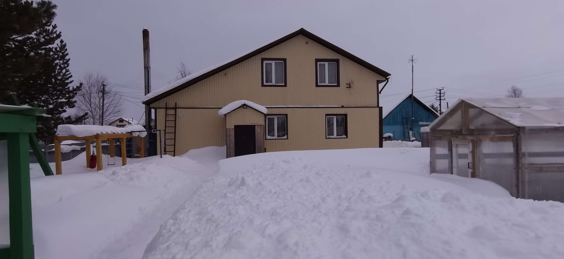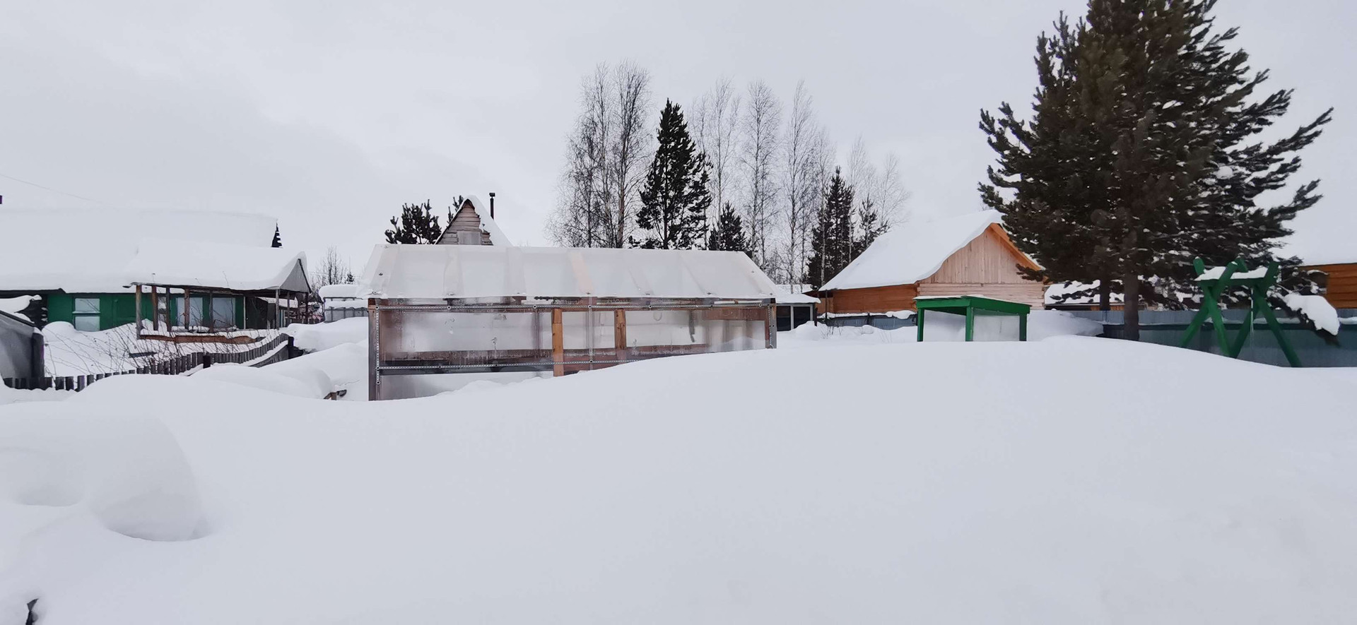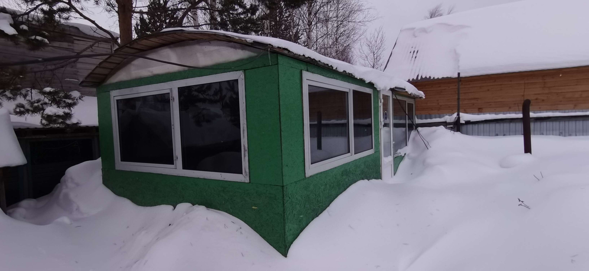 - Баня из бруса, беседка крытая с мангалом, 2 теплицы,  пристрой для содержания птиц, детская площадка с качелями, 3 дровяника, большая мастерская, контейнер на 5 тонн, емкость для воды 1 куб.
