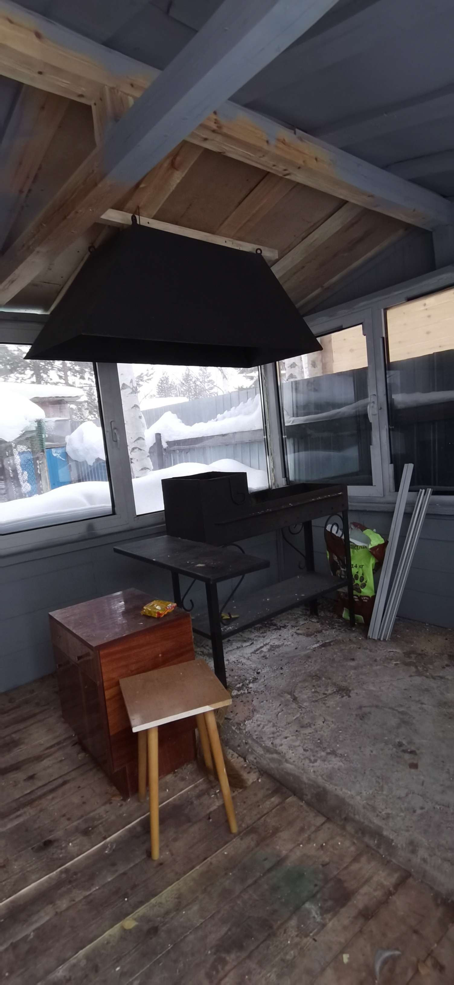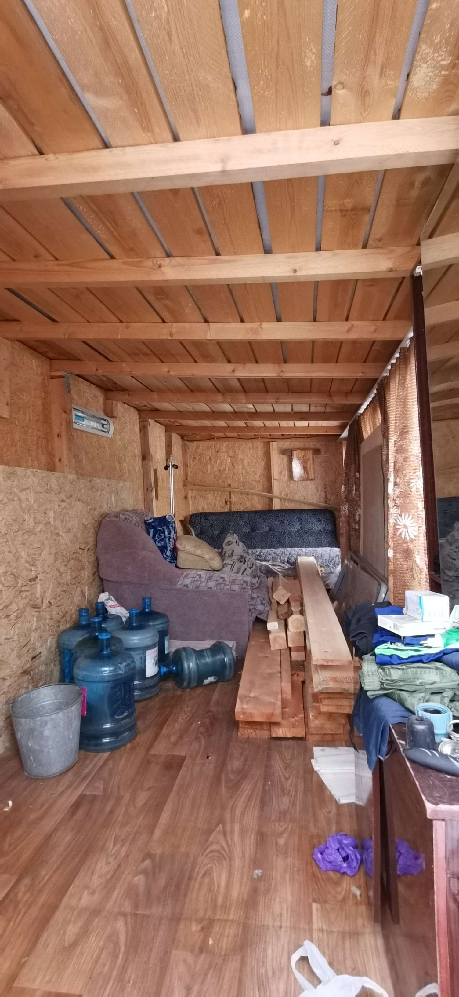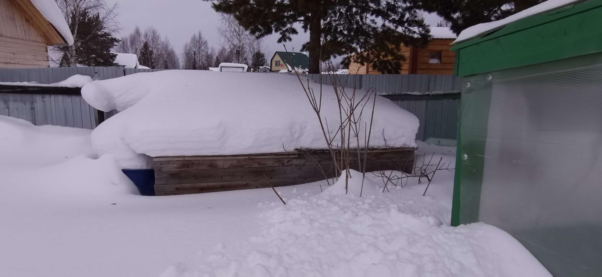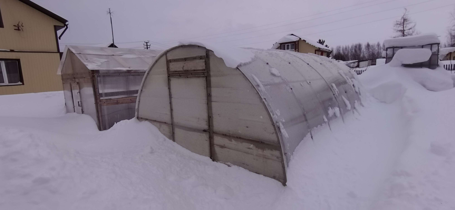 - Баня из бруса, беседка крытая с мангалом, 2 теплицы,  пристрой для содержания птиц, детская площадка с качелями, 3 дровяника, большая мастерская, контейнер на 5 тонн, емкость для воды 1 куб.