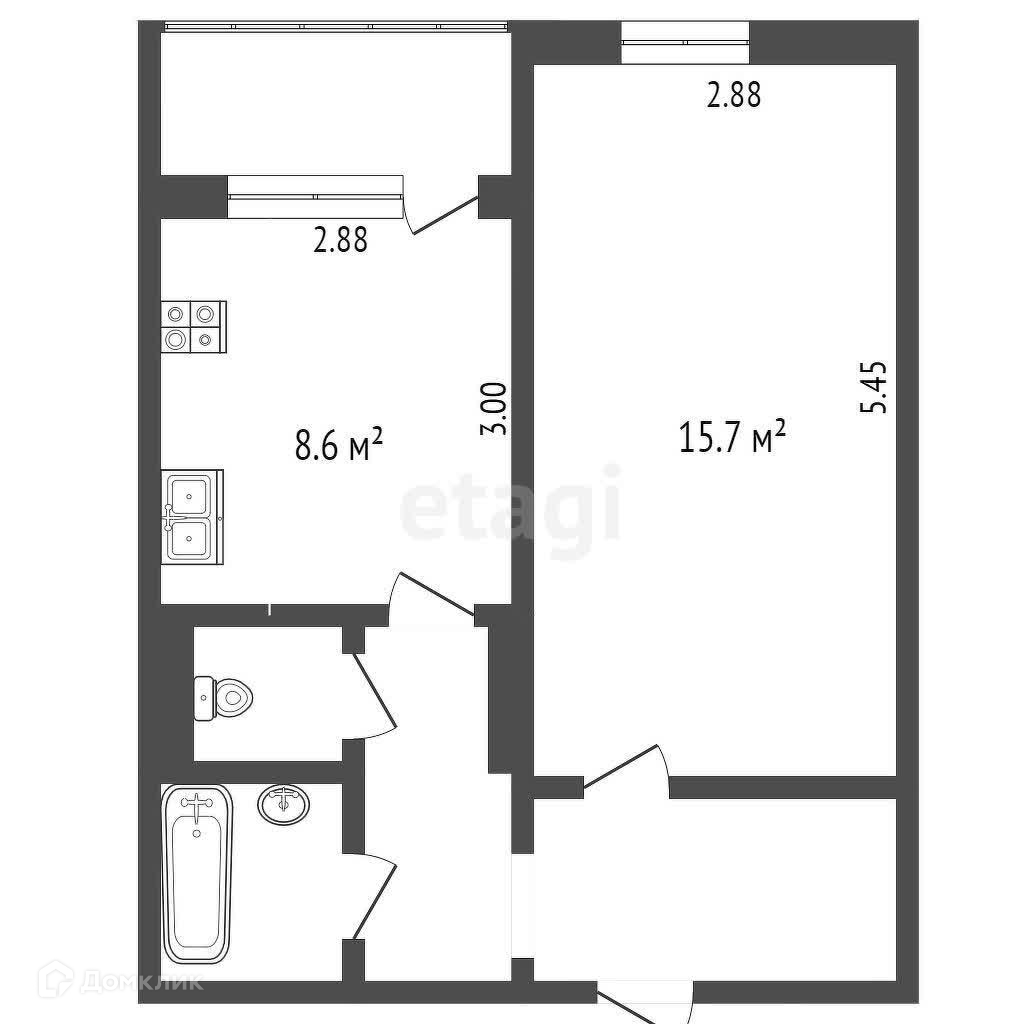 Общая площадь 35.3 м2