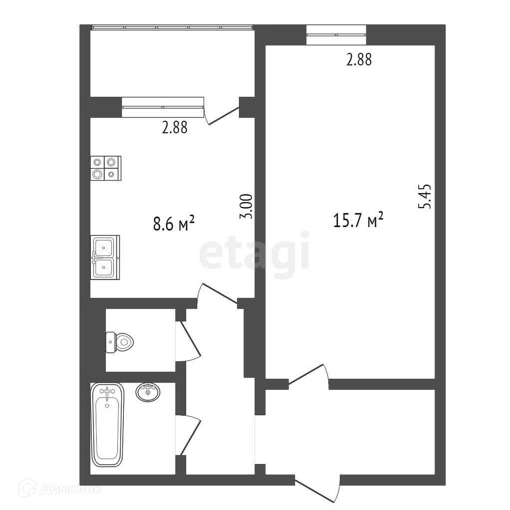 Балкон, лоджия 1 балкон