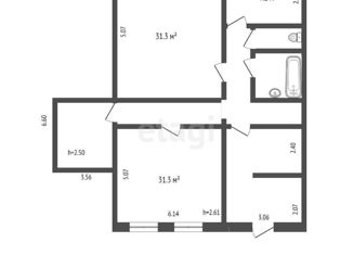 Общая площадь: 52.3 м2