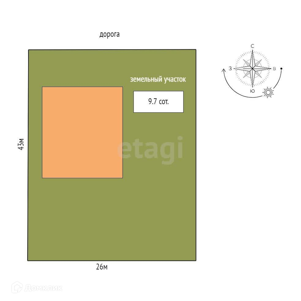 Площадь участка 9.7 сот.