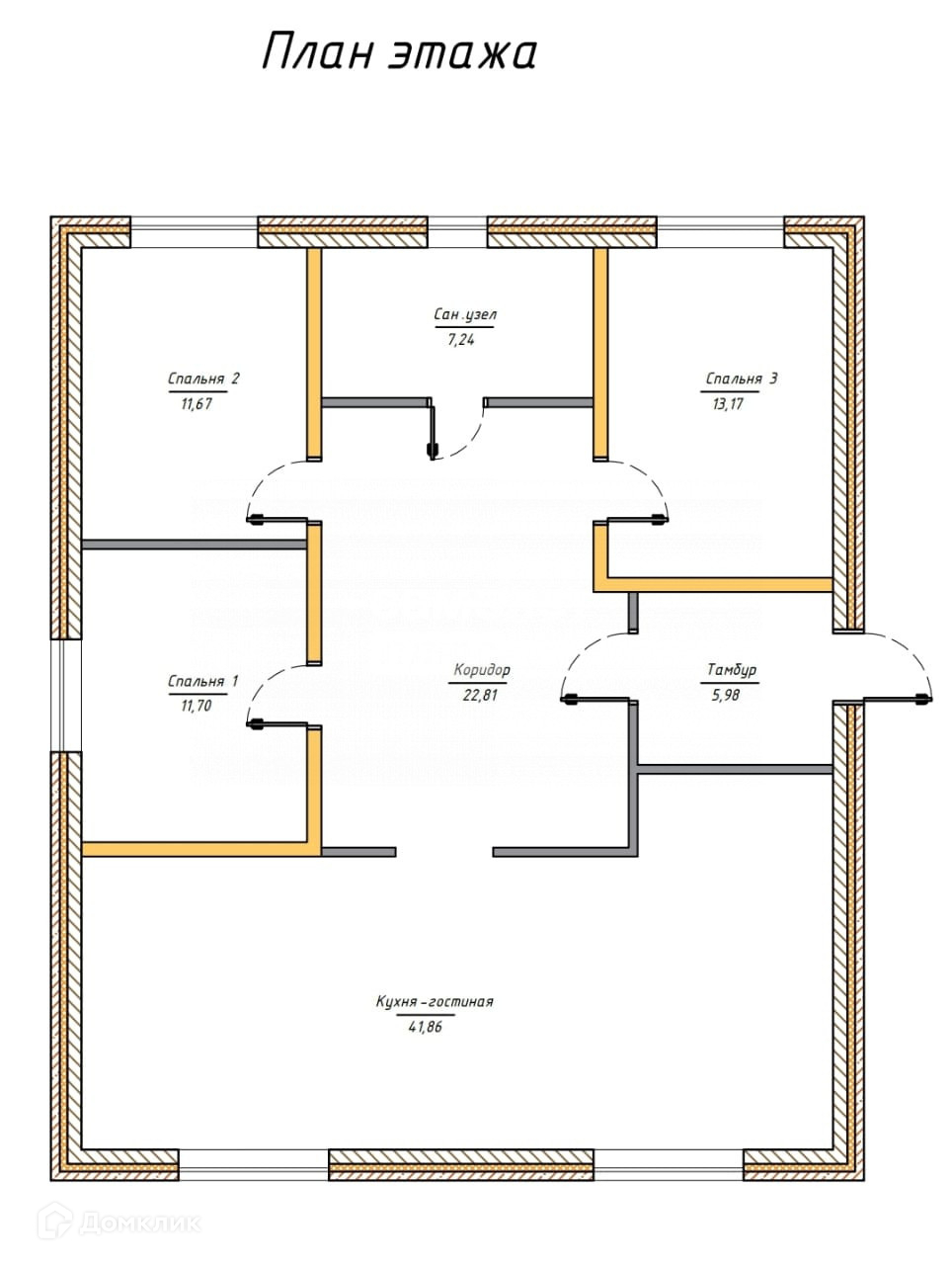 Планировка. Удобная современная планировка дома. В доме просторная кухня-гостиная 41,9 кв.м.. Три спальные комнаты для Вас и ваших детей, чтобы у каждого было личное пространство. Совмещенный сан. узел, коридор и тамбур.