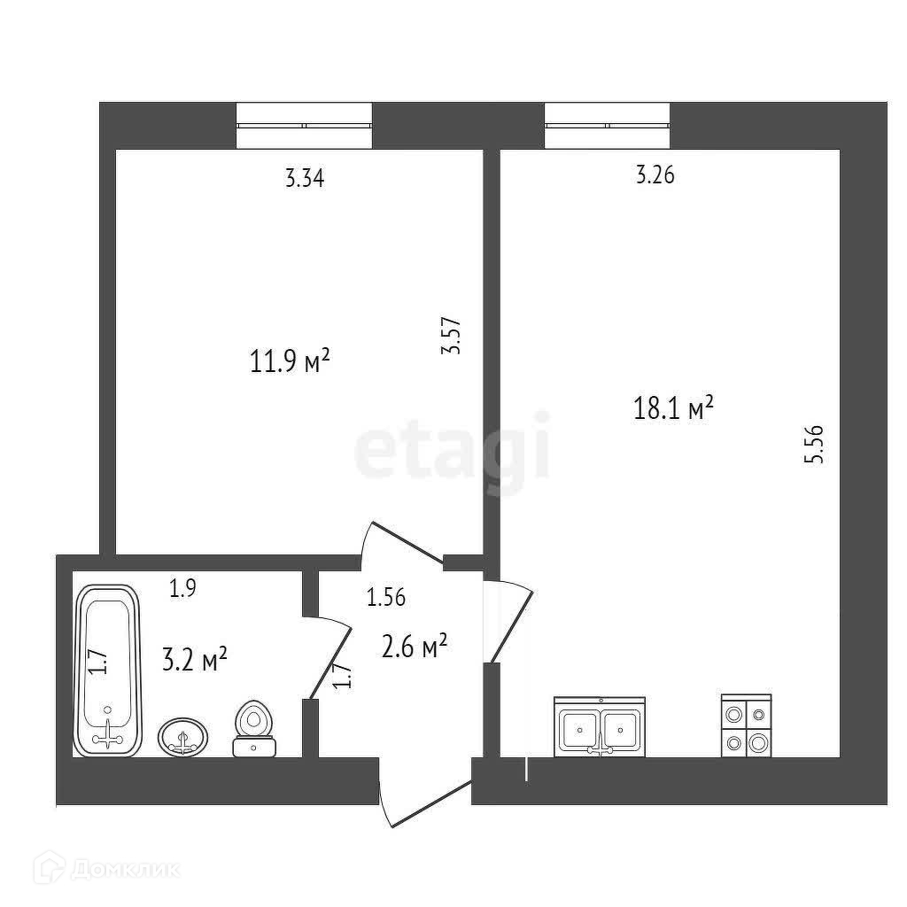 Общая площадь 35.8 м2